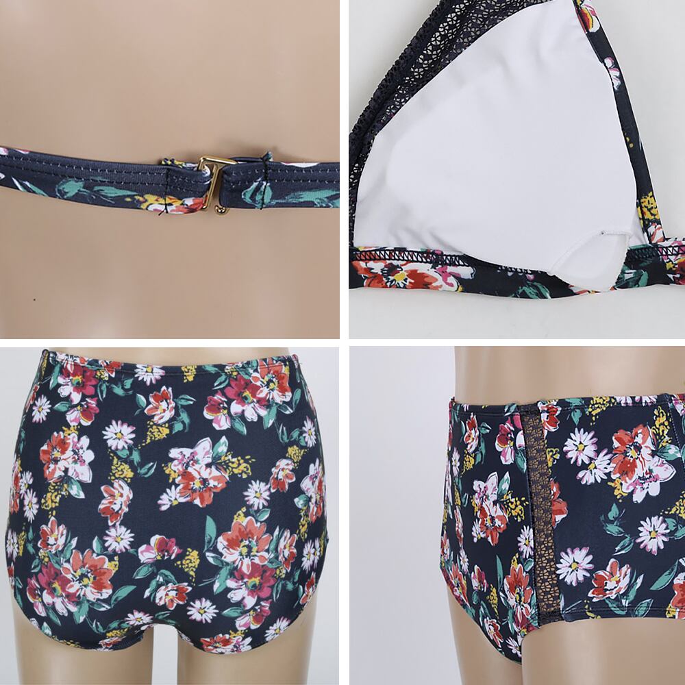 優しい雰囲気で女性らしさをあげてくれるブルー地に小花散らされたプリントで、ビーチやプールにぴったりです。