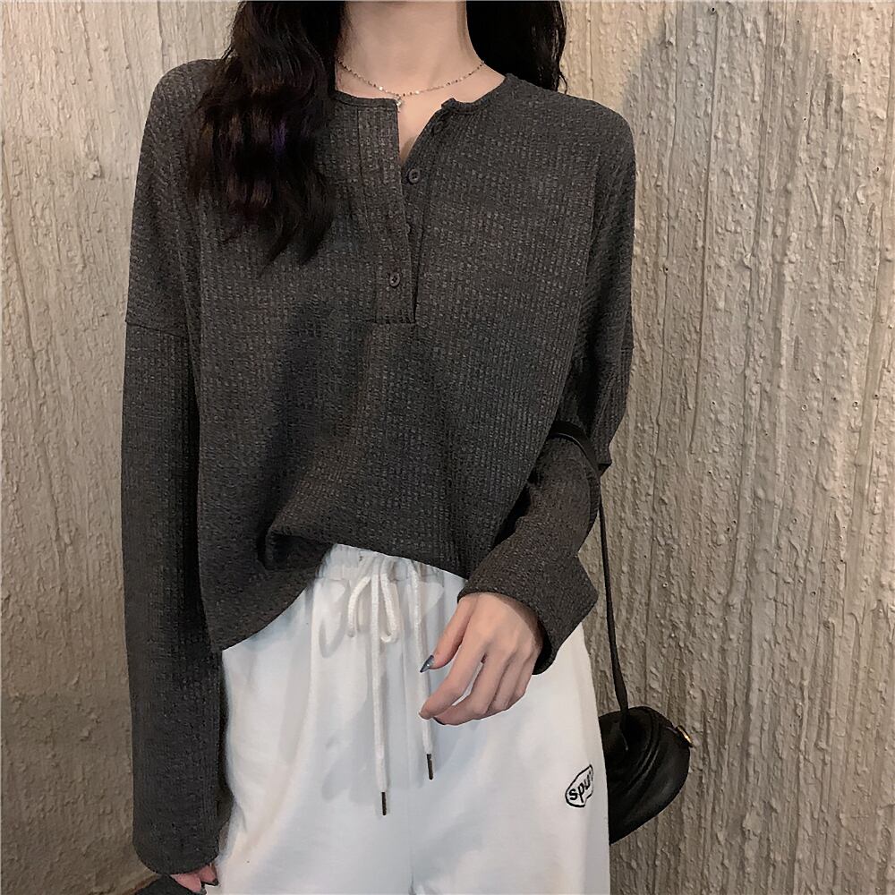 全3色 カットソー Vネック 薄手 長袖 伸縮 タイト シンプル ベーシック 細身 ストレート かわいい 大人可愛い きれいめ きちんと感 きれいめ シンプル カジュアル おしゃれ お洒落 大人女子 こなれ感 重ね着 ルーズ クール ゆる ゆったり マニッシュ ボーイッシュ イベント 存在感 公園デビュー 無地 シーズンレス レディース オフィス ビジネス OL 通勤 学生 通学フリーサイズ グレー ホワイト ブラック 韓国コーデ 韓国ファッション 灰色 黒 白