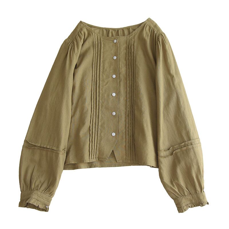 全3色 森ガール風ブラウス 袖あり 長袖 ボリューム袖 天然繊維100% ラウンドネック セミフレア ストレート Iライン レース 刺繍 シンプル カジュアル 大人 おしゃれ お洒落 アジアン 大人女子 キュート 無地 春 秋 10代 20代 30代 40代 レディース ビジネス OL 通勤 学生 通学 休日 旅行 着回し 普段使い お揃い 韓国 韓国系 オルチャン コーデ モテ サイズ フリーサイズ ベージュ カーキ 紺 韓国コーデ 韓国ファッション