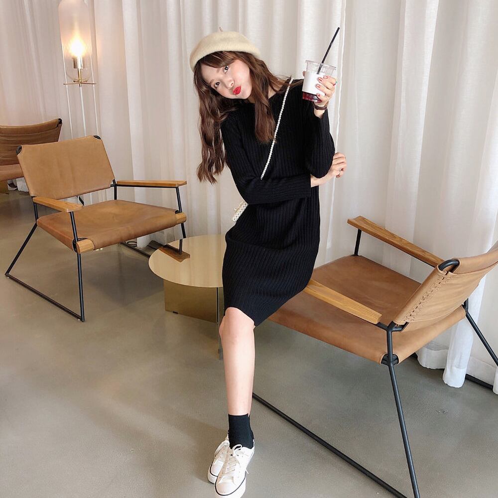 全2色 リブニットワンピース ワンピドレス 膝丈 ひざ丈 長袖 ラウンドネック ストレート Iライン リブ リブニット ニット かわいい 大人可愛い きれいめ シンプル カジュアル 大人 上品 おしゃれ お洒落 かっこいい 大人女子 こなれ感 キュート ガーリー 無地 春 秋 冬 オフィス ビジネス OL 通勤 学生 通学 デート お出かけ 女子会 休日 旅行 普段使い 重ね着 お揃い 双子 韓国 韓国系 オルチャン ファッション コーデ スタイル 楽ちん 韓国コーデ 韓国ファッション 黒 白