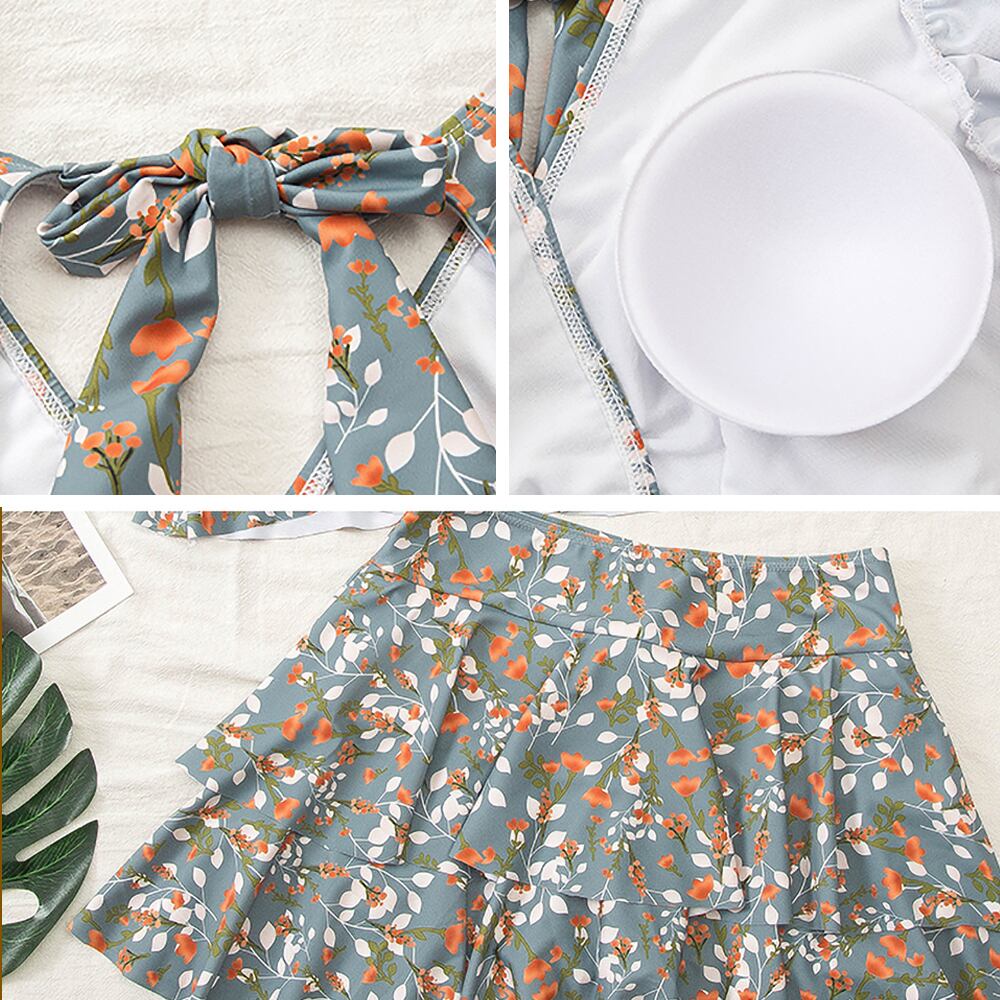 水着 袖付きティアードビキニ タンキニ 半袖 ふんわり袖 花柄 フラワープリント 二の腕カバー Vネック カシュクール風 ティアードスカート 段々フリルスカート 肩タック ツーピース セパレート ティアドロップ バックカットアウト 胸パッド付き ワイヤーなし かわいい 大人可愛い カジュアル エキゾチック エスニック 大きいサイズ 華やか 大人 おしゃれ 主役級 存在感 女っぽ キュート レディース M L LL 3L 4L 5L 韓国コーデ 韓国ファッション