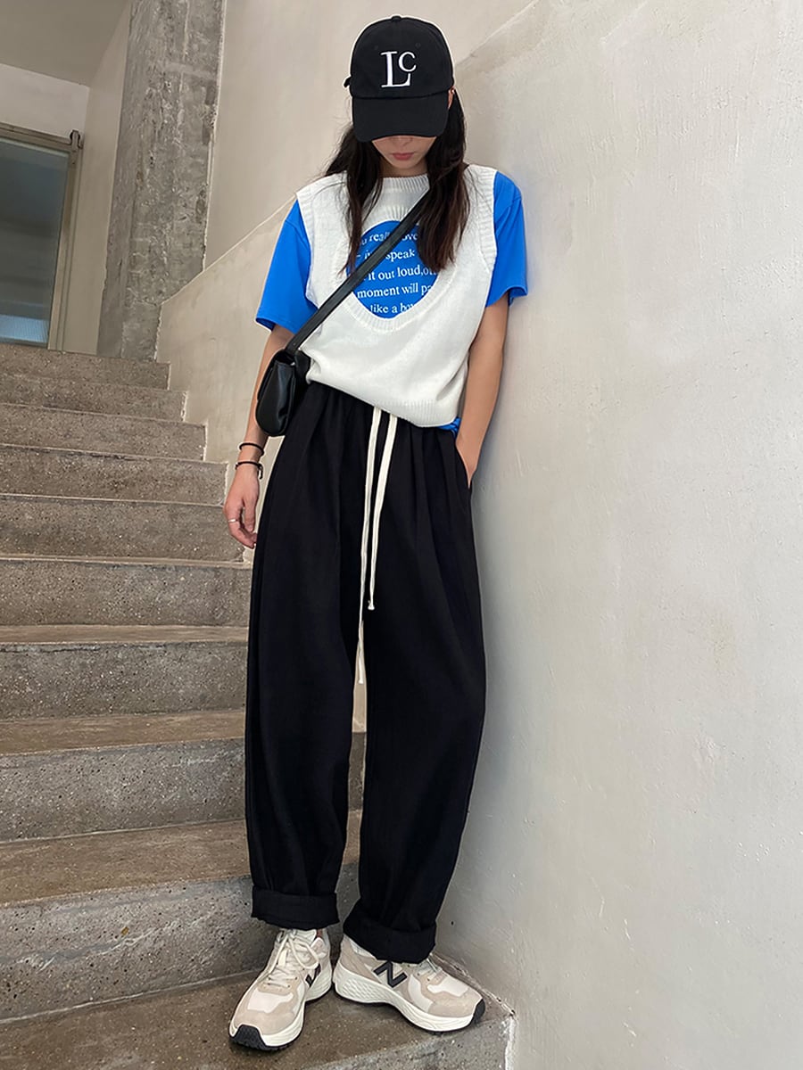 定番カラーで合わせやすいシンプルワイドパンツです。
