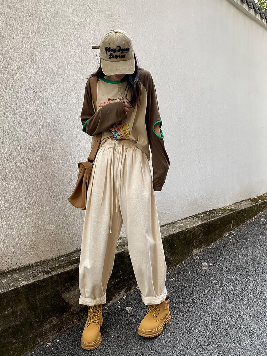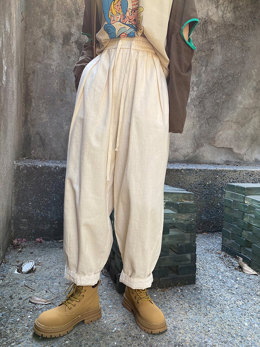 全3色 イージーパンツ ワイドパンツ ワイド ハイウエスト ワイドシルエット シンプル カジュアル 綿 コットン ナチュラル素材 綿100 楽ちん リラックス お家時間 こなれ感 ラフ メンズライク マニッシュ ボーイッシュ スポーティー 抜け感 無地 レディース 女性用 OL 学生 お出かけ 休日 運動 ジム ヨガ アウトドア 普段使い 韓国コーデ 韓国ファション 大きいサイズ ゆったり ベージュ カーキ 黒
