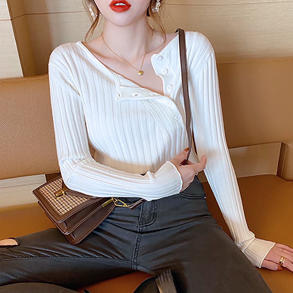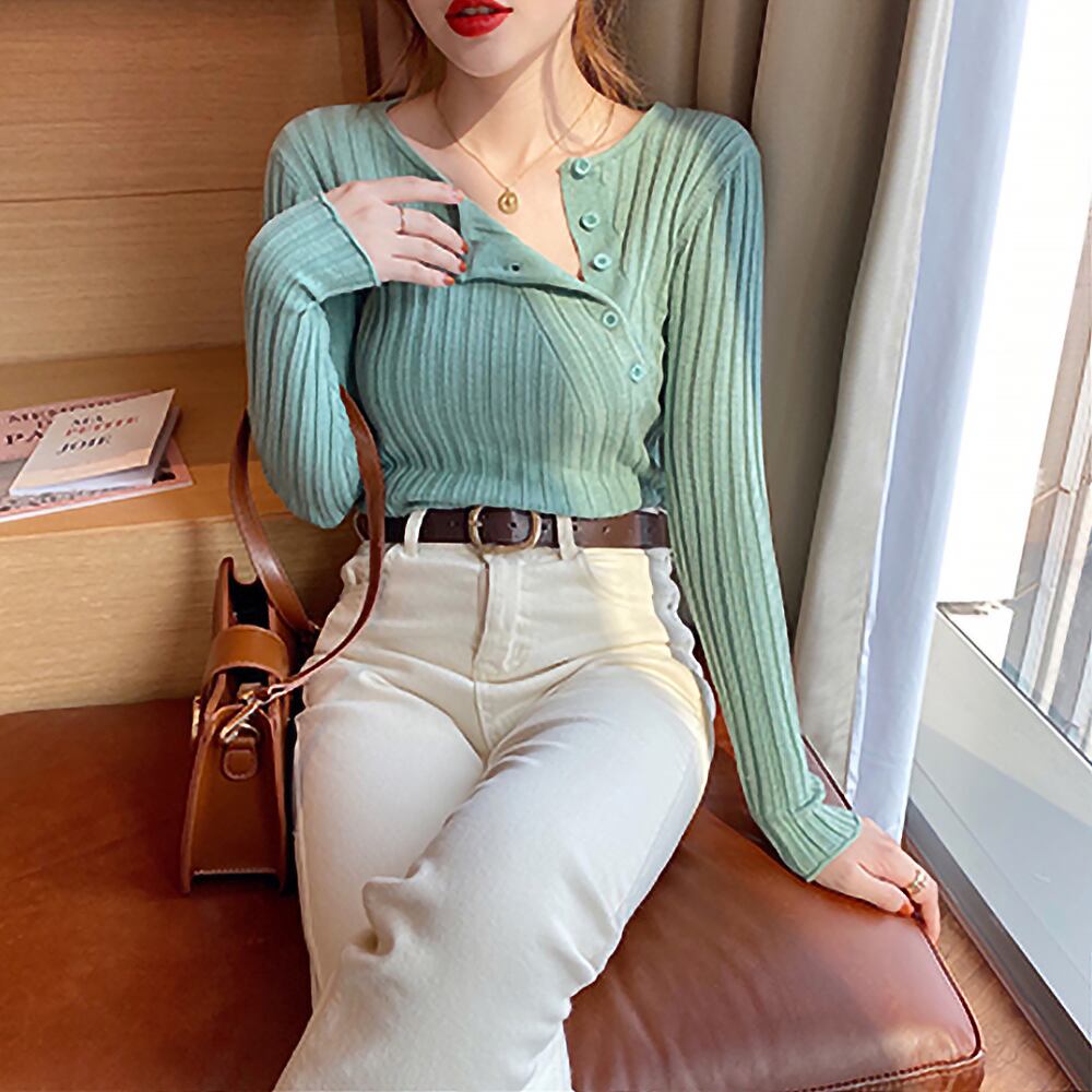 全5色 斜め襟トップス デート カットソー ニットソー アシンメトリーネック ボタン 長袖 ラウンドネック クルーネック 襟なし スリム タイト 細身 ストレート スマート プルオーバー リブニット 伸縮性 ニット 薄手 かわいい 大人可愛い きれいめ シンプル おしゃれ かっこいい 大人女子 ラフ ラブリー キュート ガーリー 個性的 モード系 モダン 主役級 存在感 抜け感 無地 お出かけ 休日 着回し 普段使い オルチャン 韓国コーデ 韓国ファッション 白 黒 ミント 緑 紫 ラベンダー
