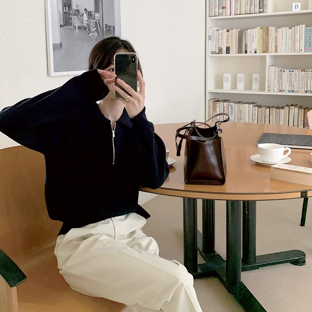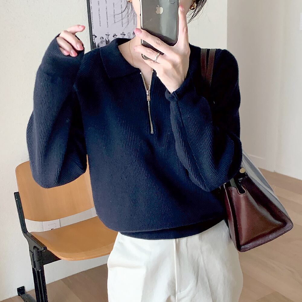 ジップ付きのカジュアルセーターです。