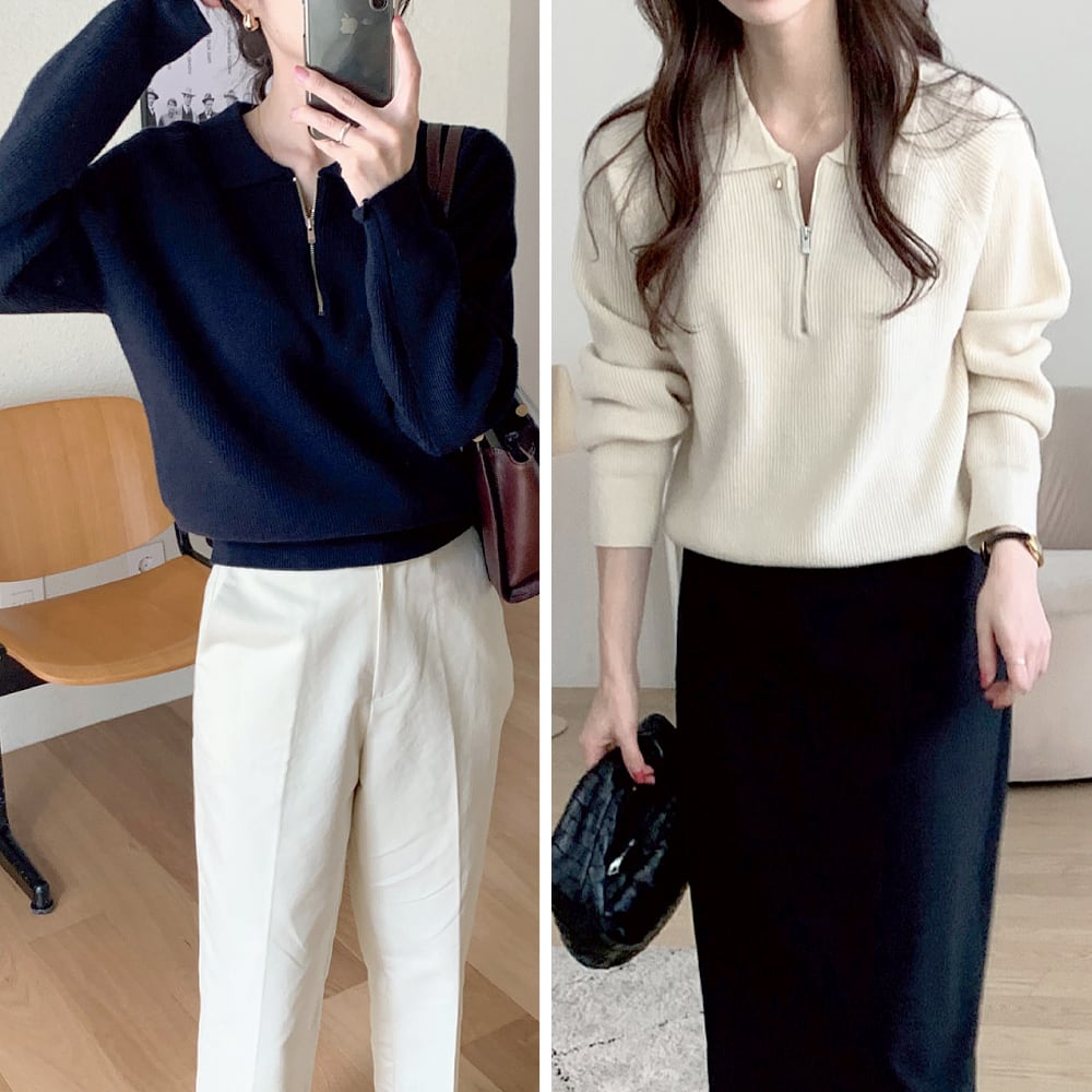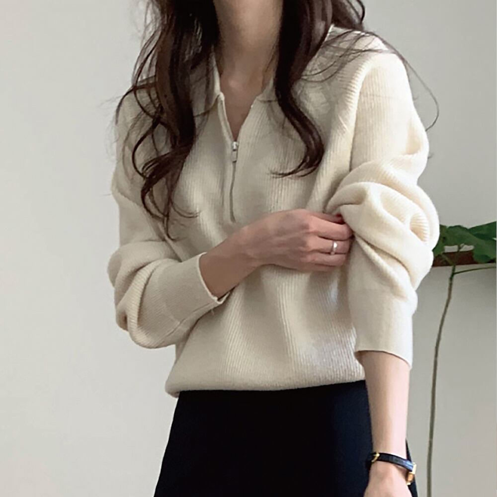 トップス ハーフジップカットソー ニットソー セーター プルオーバー ジップアップ 白トップス ミディアム丈 袖あり 長袖 カジュアル カジュアルウエア 襟付き リブニット ファスナー 前開き ニット 厚手 かわいい 大人可愛い きれいめ シンプル 上品 おしゃれ お洒落 かっこいい 大人女子 こなれ感 ラフ ラブリー キュート ガーリー 個性的 モダン 主役級 存在感 抜け感 無地 お出かけ 休日 着回し 普段使い 楽ちん 暖かい 韓国コーデ 韓国ファッション 白 黒