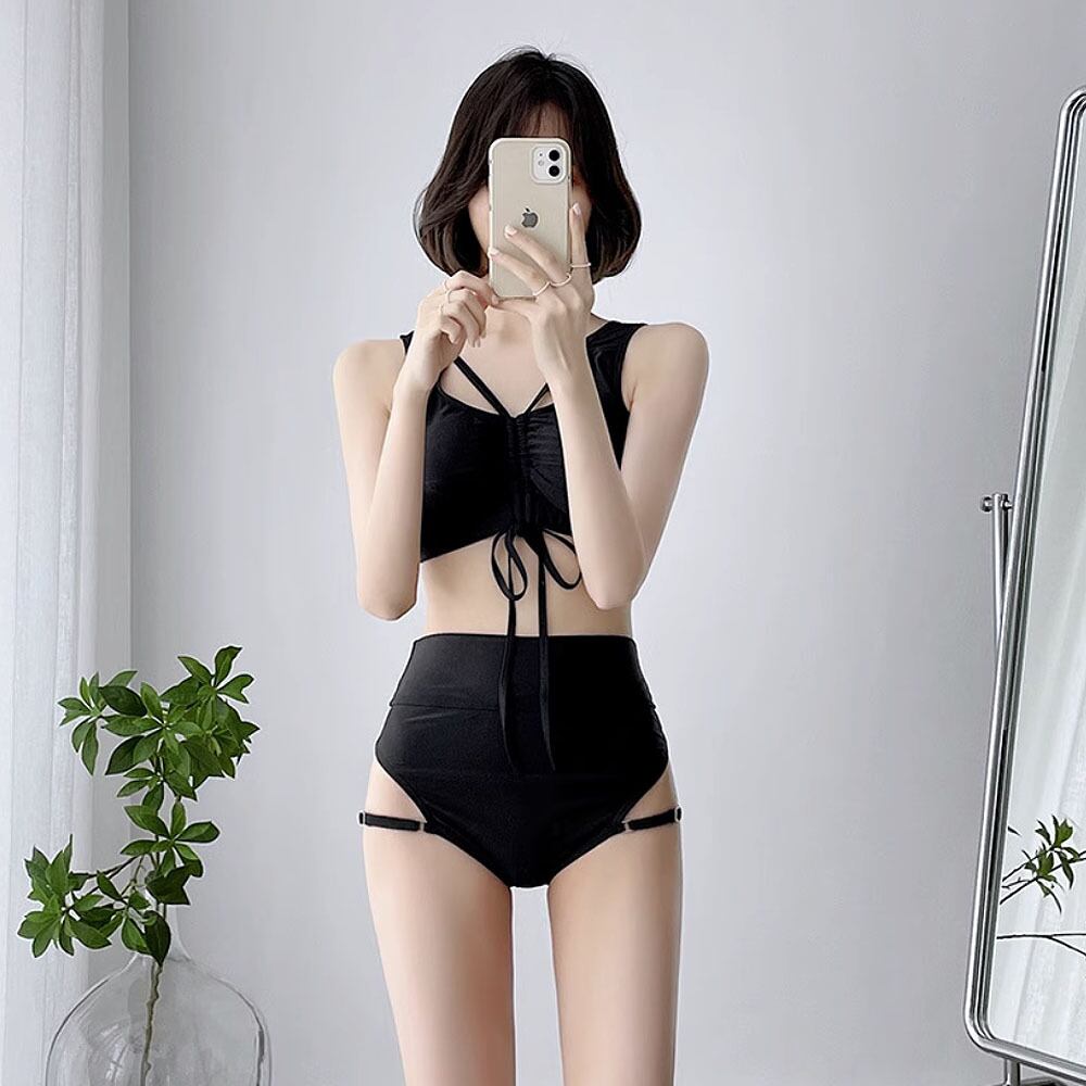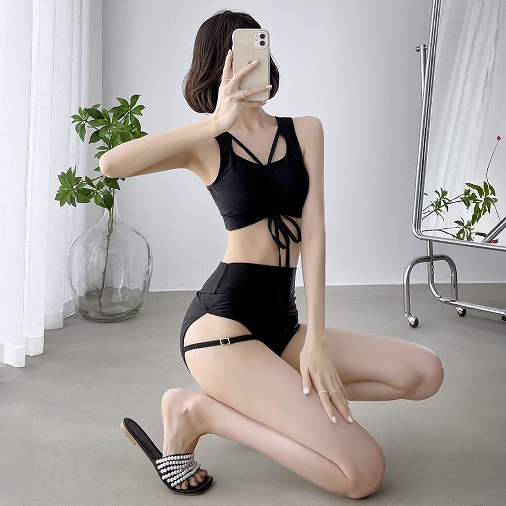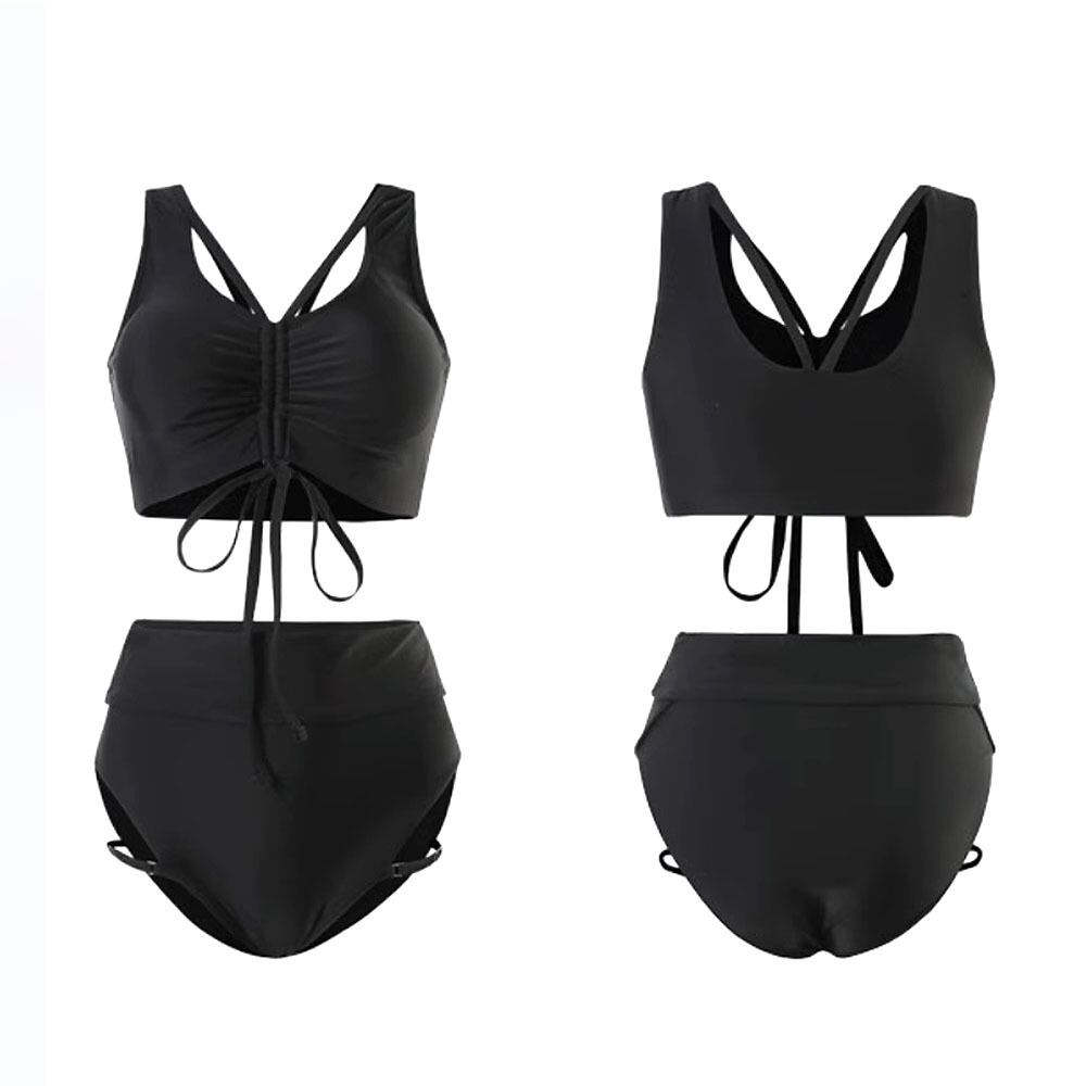 水着 フロントシャーリングビキニ タンキニ ビキニ ハイウエスト ダンス衣装 舞台衣装 レオタード ブラック 黒 ツーピース セクシー バッド付き ワイヤーなし スポーティ ノンワイヤー 太もも見せ フロントリボン スイムウエア セクシー水着 夏休み 大人 大人っぽい おしゃれ 個性的 モード系 モダン レディース 夏 海 ビーチ プール リゾート 美脚 高見え 格上げ 韓国コーデ 韓国ファッション