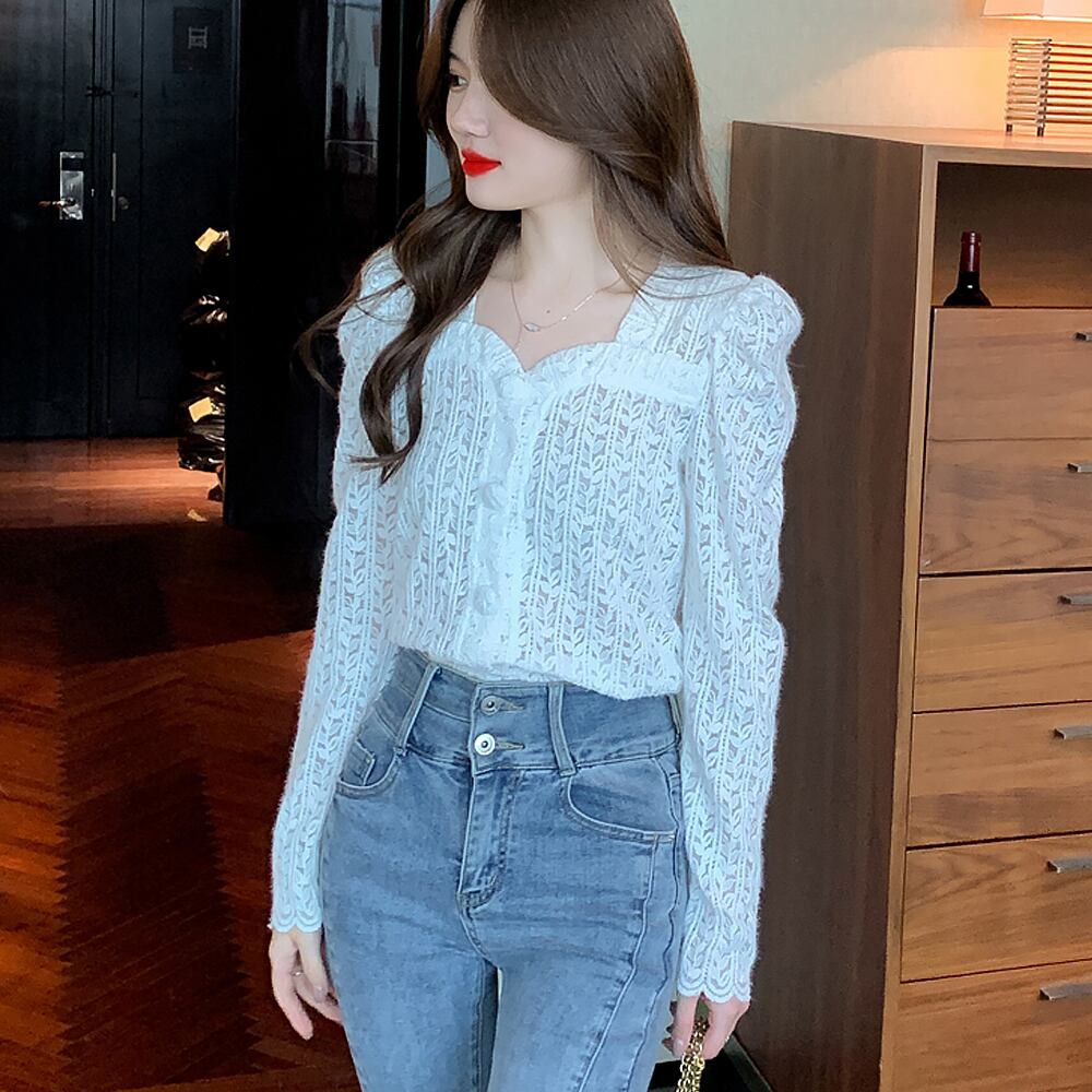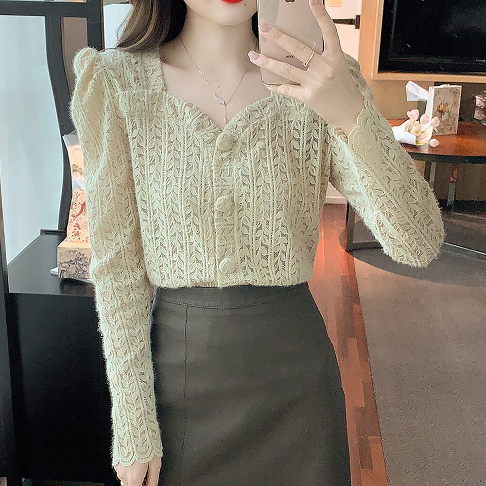 全3色 起毛レース リーフ柄レース 首元ラウンドカット 鎖骨見せ トップス ブラウス ミディアム 丈長袖 パワーショルダー ボリューム袖 襟なし ペンタゴンネック くるみボタン かわいい 大人可愛い きれいめ シンプル カジュアル 上品 おしゃれ 植物柄 葉っぱ柄 秋 冬 春 レディース 女性用 ママ 女の子 OL 通勤 学生 通学 デート お出かけ 女子会 休日 普段使い 韓国系 オルチャン ファッション S M L XL 2XL 大きいサイズ 白 ホワイト 緑 グリーン カーキ カラバリ
