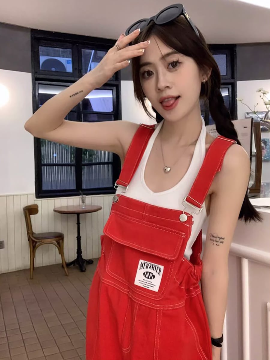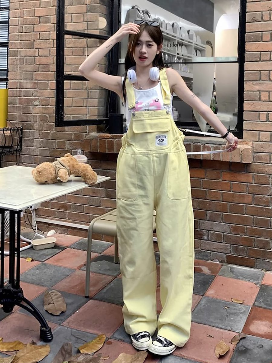 全3色 カラーデニムオーバーオール つなぎ デニム サロペットパンツ デニム つなぎ サロペット ジャンプスーツ オールインワン オーバーオール カバーオール コンビネゾン レトロ アメカジ 動きやすい 楽ちん お家コーデ リラックスタイム くつろぎタイム カジュアル かわいい 大人可愛い 可愛い かっこいい おしゃれ 韓国系 オルチャン 韓国コーデ 韓国ファッション カラーデニム レッド 赤 紫 パープル 黄色 イエロー