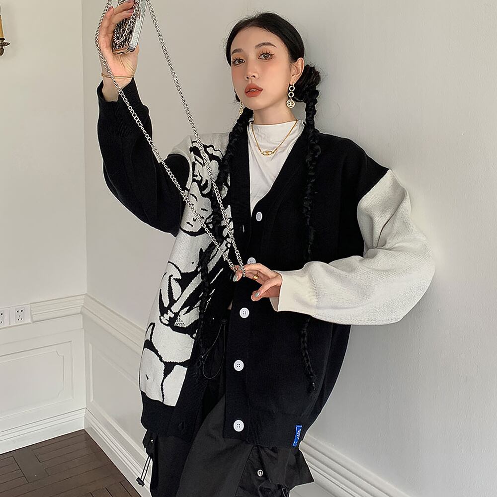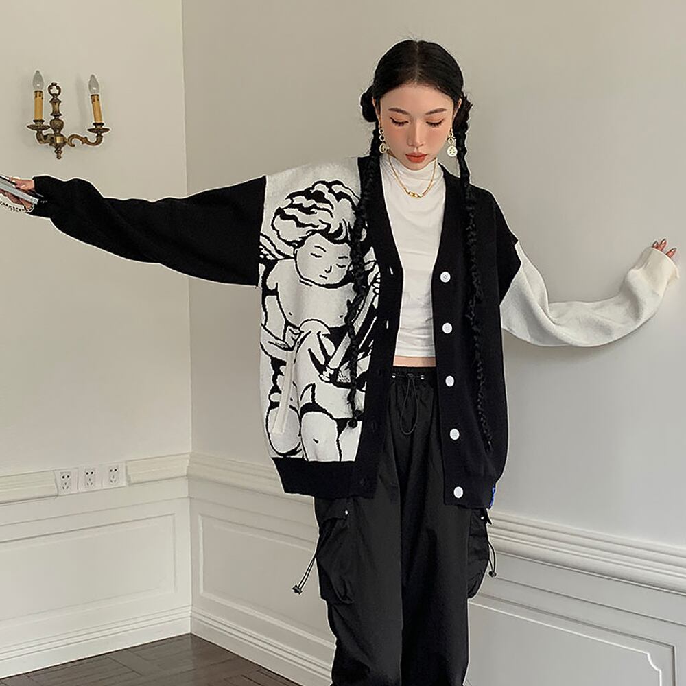 レディースカーディガン 天使 エンジェル 編み込み Vネック 前ボタン 大きめ ゆったり アウター トップス ユニーク バロックエンジェル かわいい 大人可愛い きれいめ カジュアル 大人 上品 おしゃれ レトロ エキゾチック 大人可愛い 大人女子 こなれ感 ラフ ラブリー キュート ガーリー 個性的 レディース ビジネス OL 通勤 学生 通学 デート お出かけ 公園デビュー 女子会 お泊まり 休日 体系カバー 韓国コーデ 韓国ファッション オルチャン 白黒 モノトーン