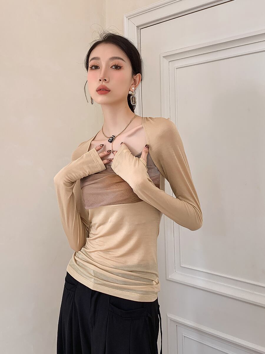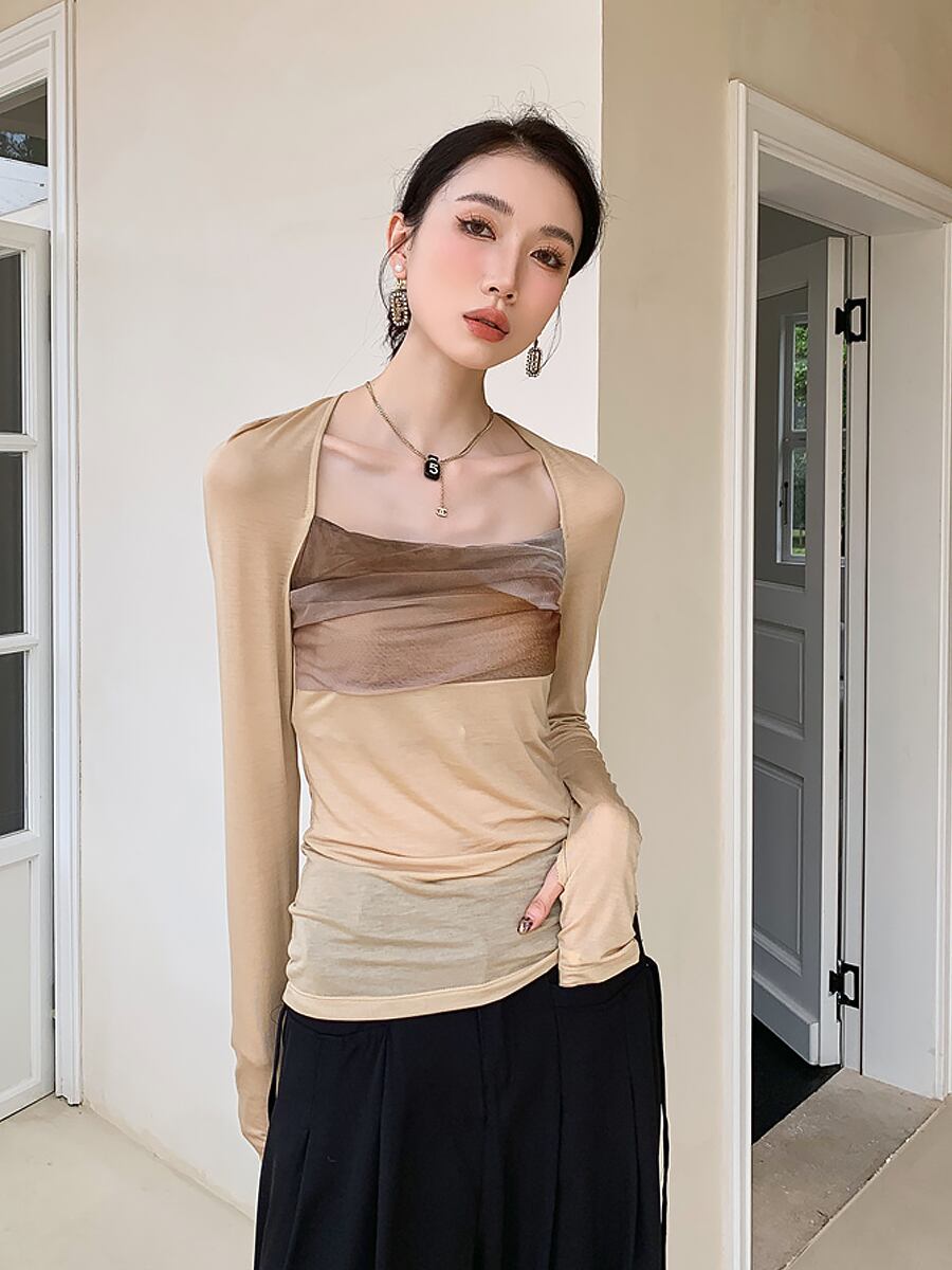 レトロプリント 長袖スクエアネックTシャツ トラペーズ・ネック カットソー タイト Tシャツ ミックスカラー スリムフィット 鎖骨ちら見せ 長袖 生地薄め 春 夏 秋 かわいい 清楚 大人可愛い きれいめ シンプル カジュアル 大人 上品 おしゃれ 大人可愛い 大人女子 こなれ感 ラフ ラブリー キュート ガーリー レディース 学生 通学 韓国コーデ 韓国ファッション オルチャン アプリコット 薄茶 ミルクティーベージュ