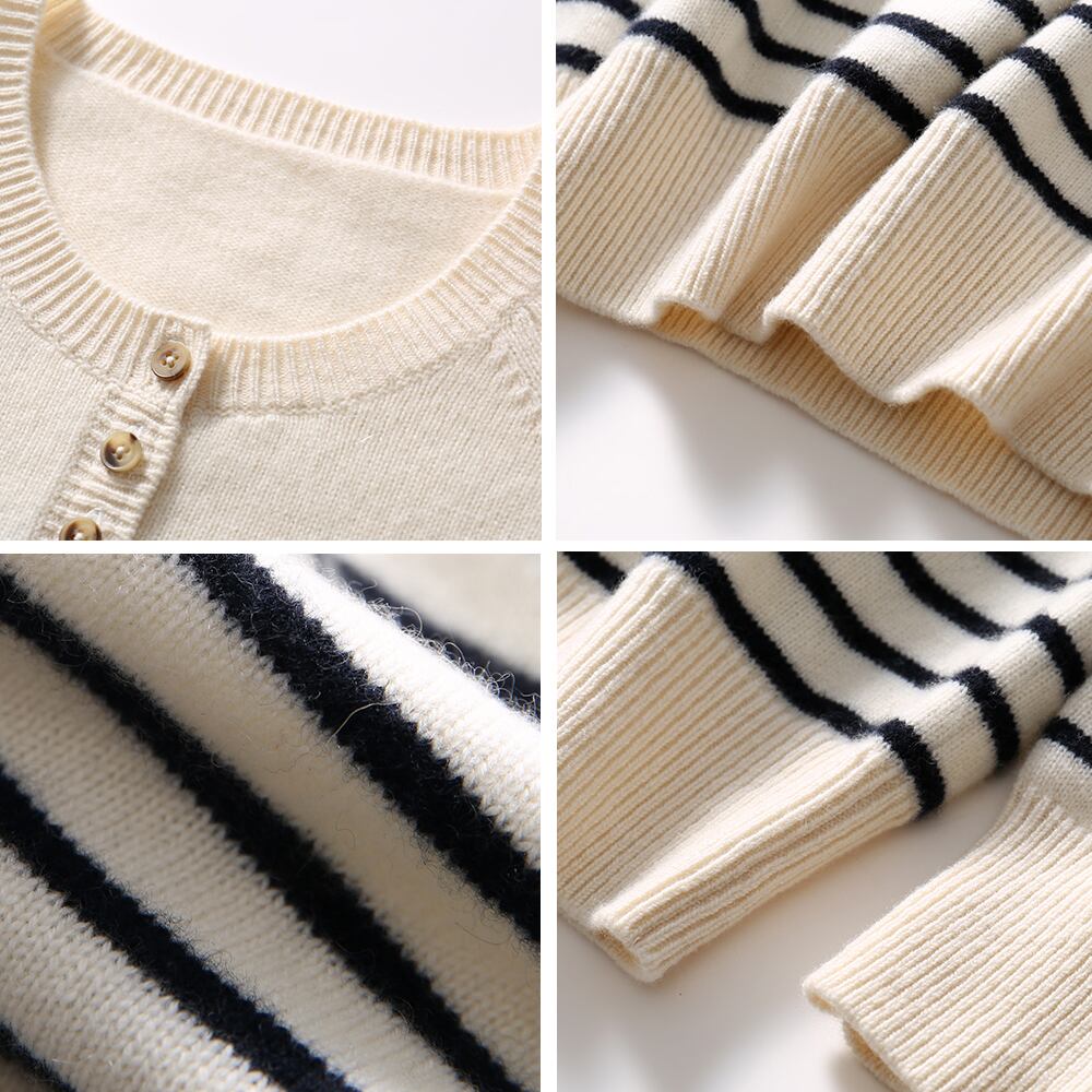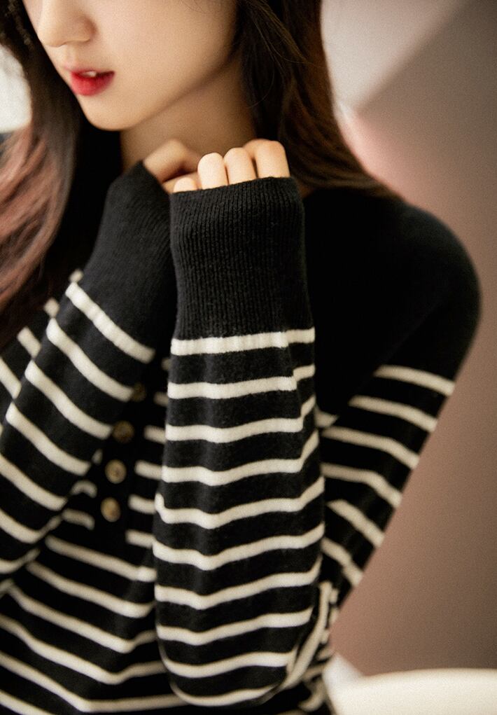 全2色 ハーフボタンニット トップス カーディガン 袖あり 長袖 ラウンドネック 襟なし 前開き 伸縮性 かわいい 大人可愛い シンプル カジュアル 大人 おしゃれ レトロ 大人女子 こなれ感 ラフ キュート 主役級 存在感 抜け感 ボーダー 春 秋 10代 20代 30代 レディース 学生 通学 デート お出かけ 公園デビュー 女子会 休日 着回し 普段使い 重ね着 韓国 オルチャン ファッション コーデ スタイル S M L XL ブラック ホワイト 韓国コーデ 韓国ファッション