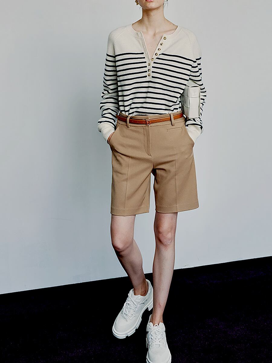 シーズン問わず長く楽しめます。ボタン調節で首元の印象も変わります。