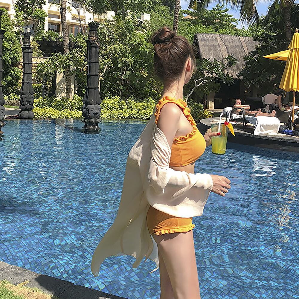 ビタミンカラーの肌色がよく見えるビキニ上下です。