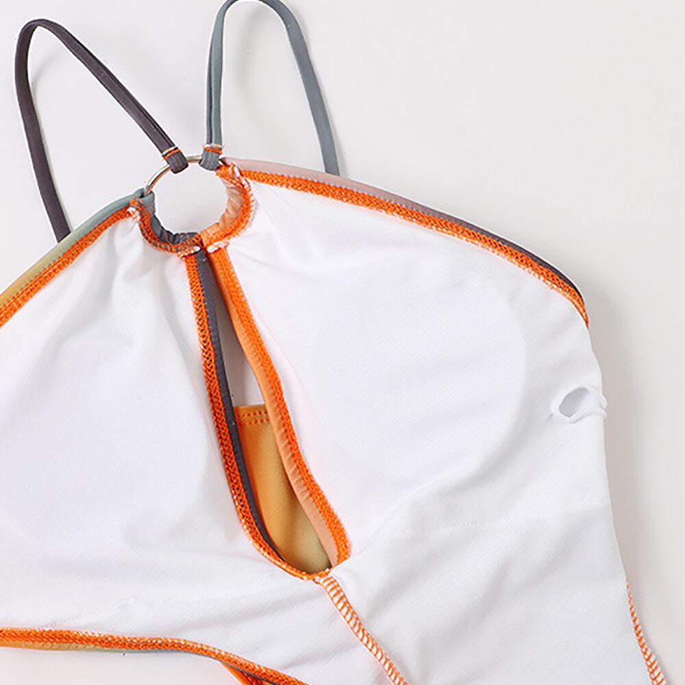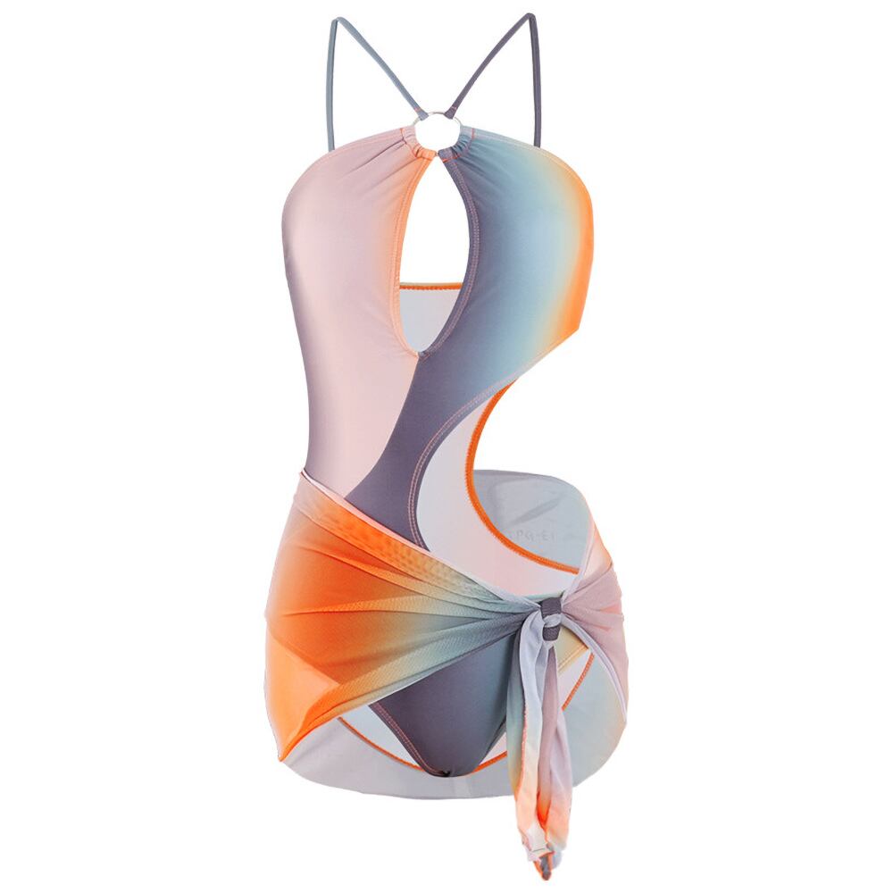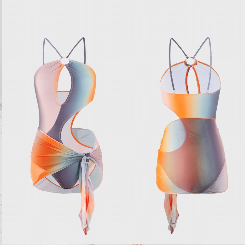 水着 2点セット グラデーションカラーカットアウトワンピース+パレオ モノキニ ワンピース オレンジ ネイビー パープル サイドカット カットアウト キーホール へそ見え くびれ ウエスト強調 スイムウェア パッド付き ワイヤーなし レトロ モダン フェミニン セクシー 大胆 大人 お嬢様 おしゃれ お洒落 女っぽ 個性的 レディース ホテル 温泉 海 ビーチ プール リゾート 旅行 スタイルアップ 美スタイル 韓国 S M L 韓国コーデ 韓国ファッション