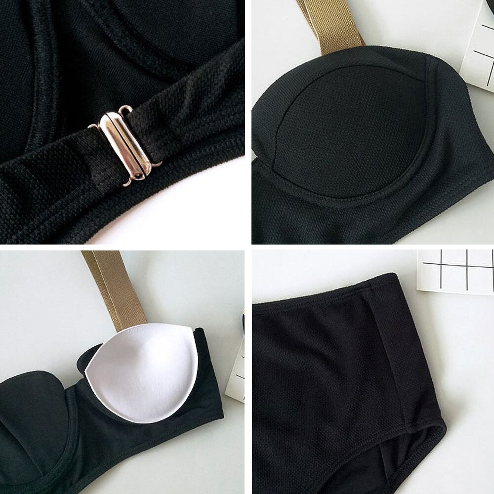 水着 ゴールドストラップハイウエストビキニ モノキニ ブラック 黒 金色 ゴールド スタイリッシュ シンプル スタイリッシュ クール フロントパネルスクエアカット ハイウエスト バスト寄せ 体型カバー スイムウェア 胸ホールド 体型カバー パッド付き ワイヤーあり フェミニン バイカラー おしゃれ お洒落 レディース 個性的 女性用 ホテル 温泉 海 ナイトプール リゾート バストアップ しっかりホールド 脚長効果 旅行 スタイルアップ 韓国 M L XL 韓国コーデ 韓国ファッション