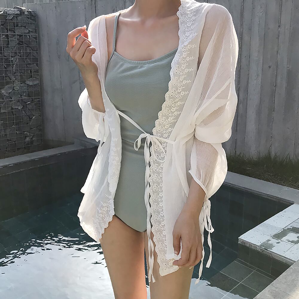 薄めのくすんだ青が上品な一着で、ホテルのプールなどに似合います!