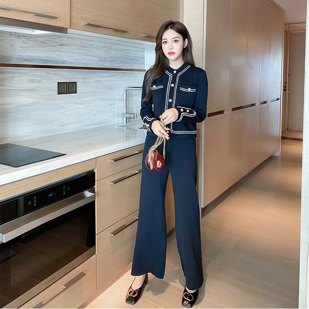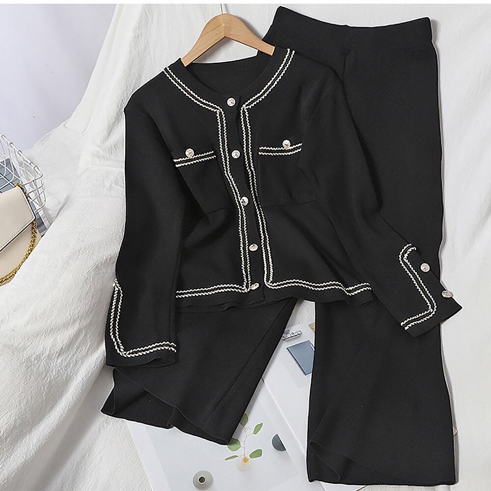 全2色 2点セット カーディガン+ニットパンツ ニットセットアップトップス ボトムス カーディガン ズボン ワイドパンツ ミディアム丈 長袖 ラウンドネック 襟付き ハイウエスト 2点セット パンツ お得 かわいい 大人可愛い きれいめ シンプル 大人 上品 おしゃれ かっこいい 大人女子 こなれ感 キュート 主役級 フォーマル 無地 春 秋 レディース オフィス 通勤 デート お出かけ 着回し 重ね着 韓国 ファッション コーデ フリーサイズ ブラック ホワイト
