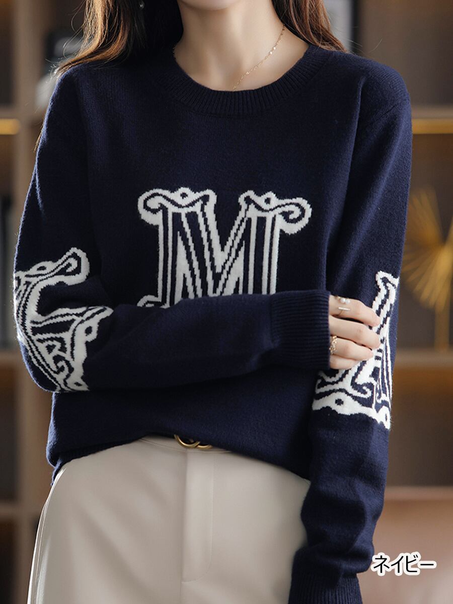 全5色 アルファベットロゴセーター プルオーバー ミディアム丈 長袖 イニシャルロゴ 襟なし ラウンドネック ニット かわいい 大人可愛い シンプル カジュアル 上品 おしゃれ お洒落 レトロ キュート 個性的 存在感 リラックス インパクト 通勤 オフィス ビジネス 無地 秋 冬 レディース 学生 通学 重ね着 普段使い 韓国系 オルチャン ファッション M L XL 2XL 3XL 大きめ ゆったり ゆる サイズ 体型カバー 韓国コーデ 韓国ファッション 黒 紺 白 ピンク