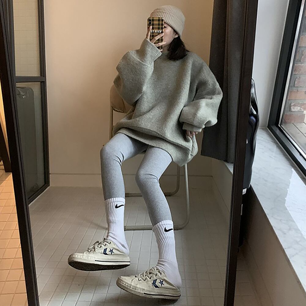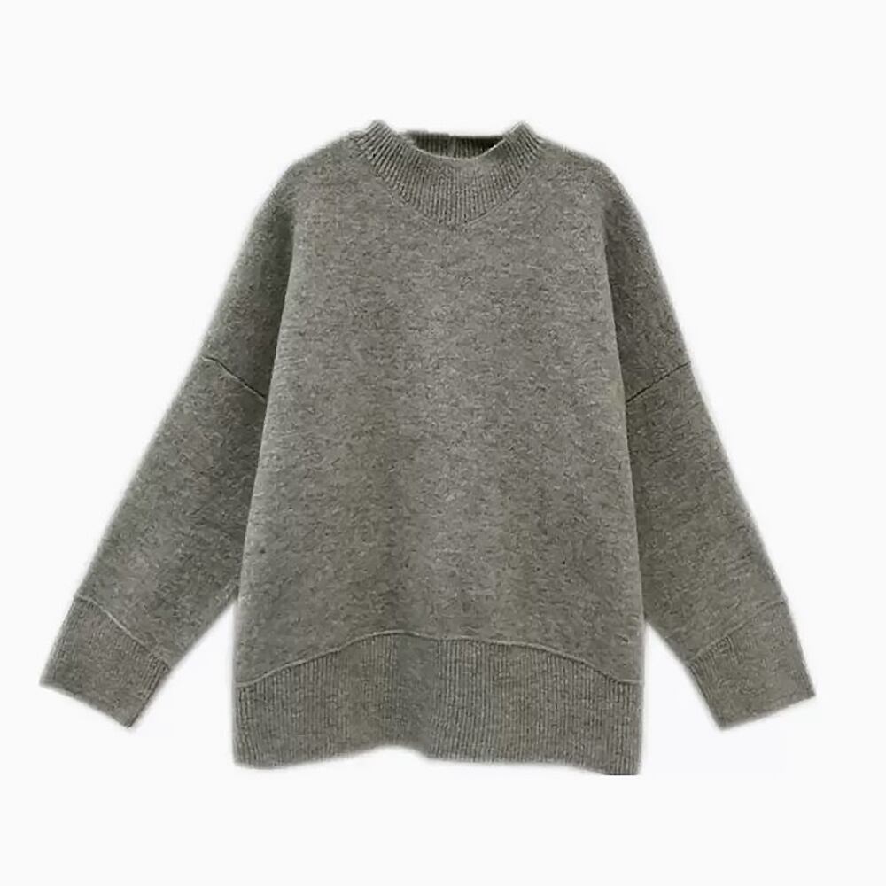 ルーズニット トップス セーター プルオーバーニット ミディアム丈 長袖 ドルマンスリーブ 襟なし ラウンドネック ニット かわいい 大人可愛い シンプル カジュアル おしゃれ レトロ キュート 個性的 存在感 リラックス インパクト 無地 秋 冬 レディース 学生 通学 通勤 オフィス デート お出かけ 休日 重ね着 普段使い 韓国系 オルチャン ファッション フリーサイズ 大きめ ゆったり ゆる グレー 灰色 体型カバー 韓国コーデ 韓国ファッション