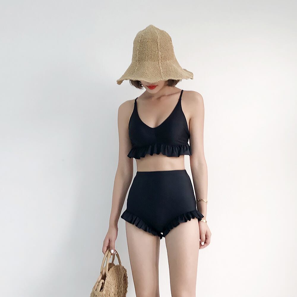 全2色 水着 バッククロスハイウエストビキニ タンキニ 体系カバー 水着 セパレート パッド付き ワイヤーあり 裾フリル ハイウエスト バックコンシャス バックシャン 背中美人 バッククロス フリル バッククロスストラップ 上下セット ツーピース かわいい 大人可愛い セクシー おしゃれ お洒落 主役級 ラブリー キュート 海 ビーチ プール リゾート 美脚 脚長 着痩せ 韓国系 オルチャン 韓国コーデ 韓国ファッション 黒 赤