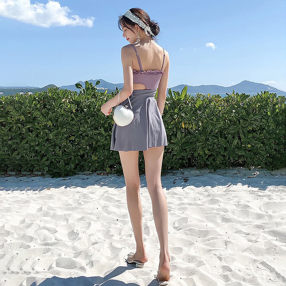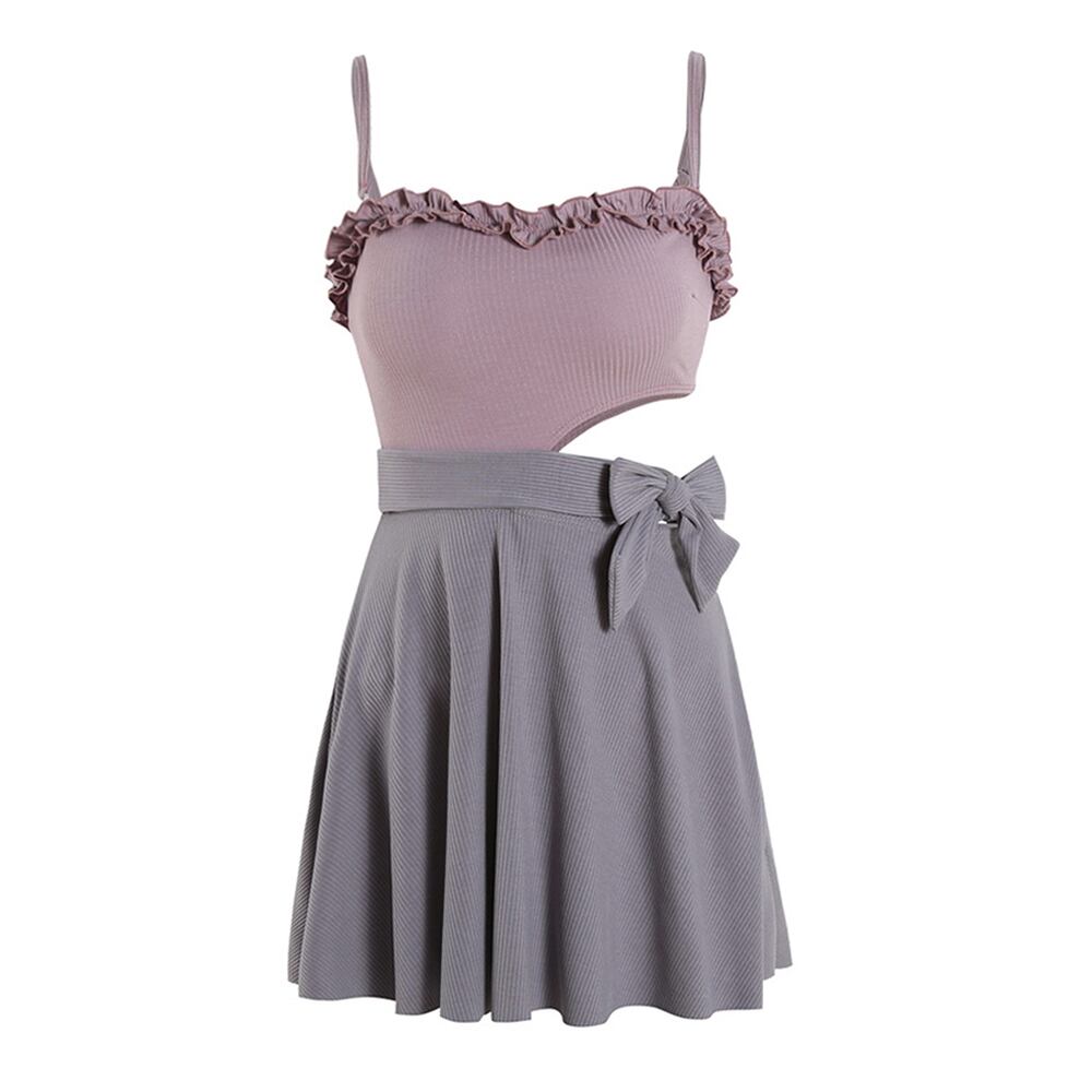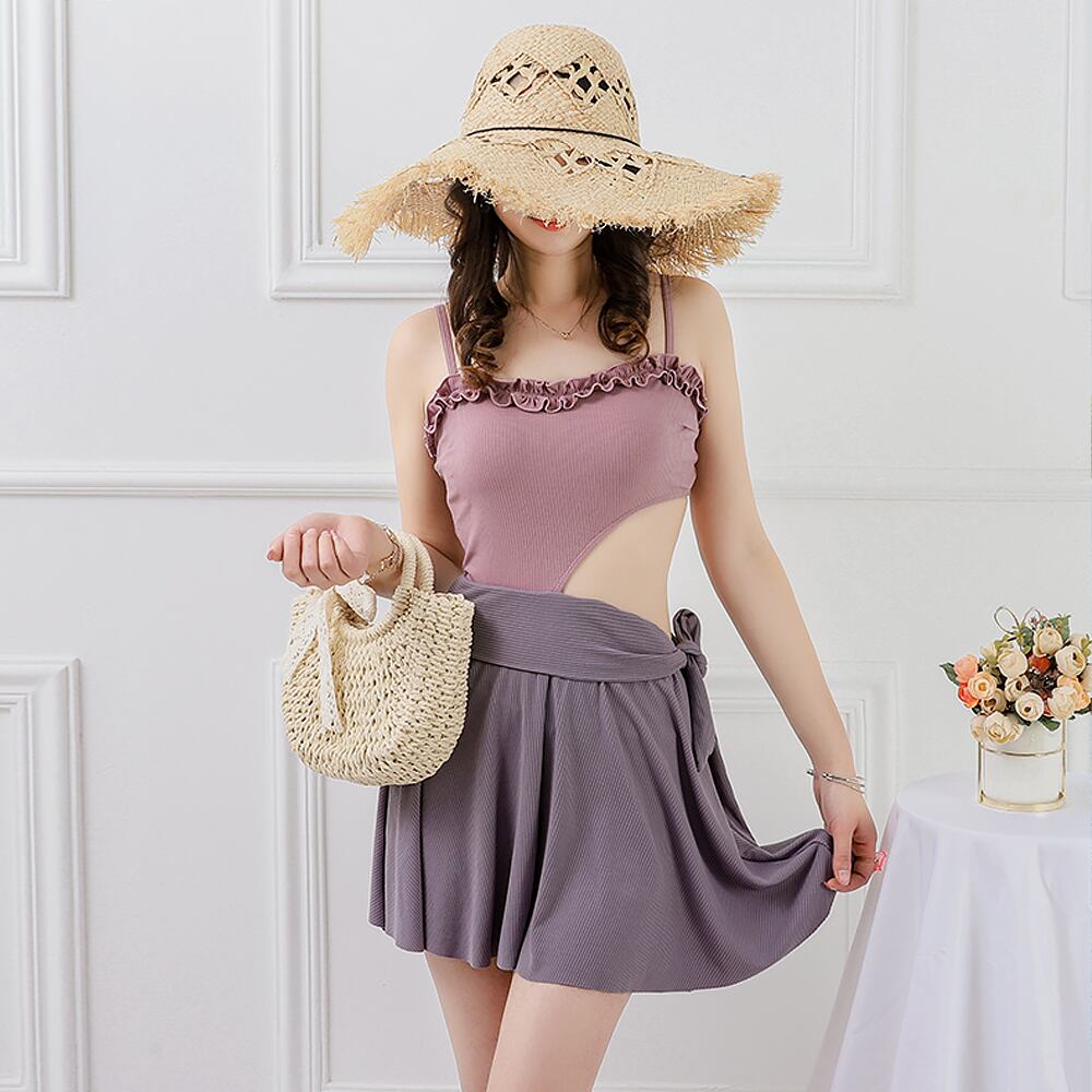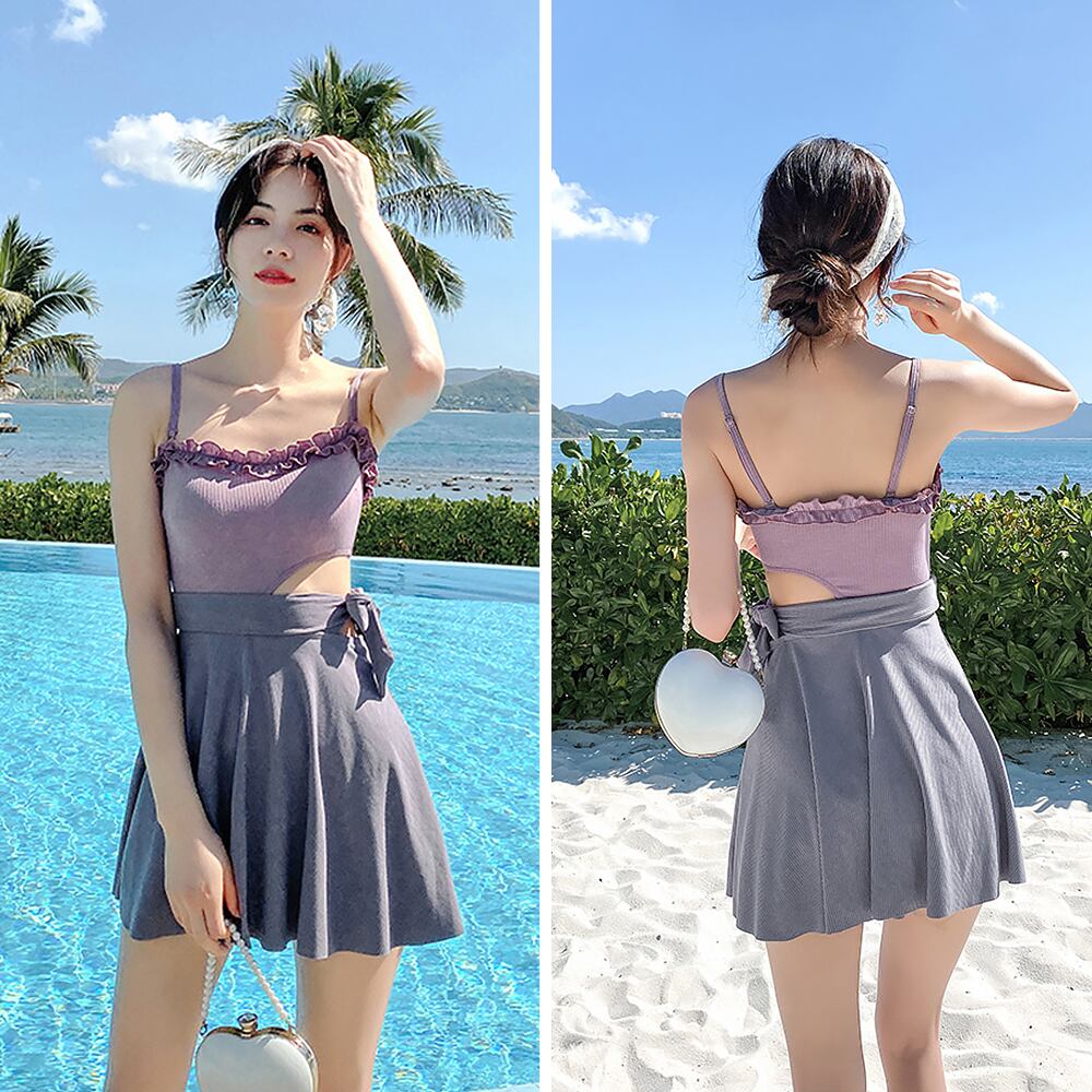 水着 ウエストカットフレアワンピース水着 ワンピース 胸元フリル サイドカットアウト カットアウト ウエストリボン リボン 体系カバー パープル 紫 バイオレット ラベンダー グレー 灰色 オールインワン リボン 露出少なめ 露出控えめ フレアスカート 胸パッド付き ワイヤーなし かわいい 大人可愛い カジュアル ナチュラル 華やか 大人 おしゃれ 主役級 存在感 女っぽ キュート レディース M L XL 韓国コーデ 韓国ファッション
