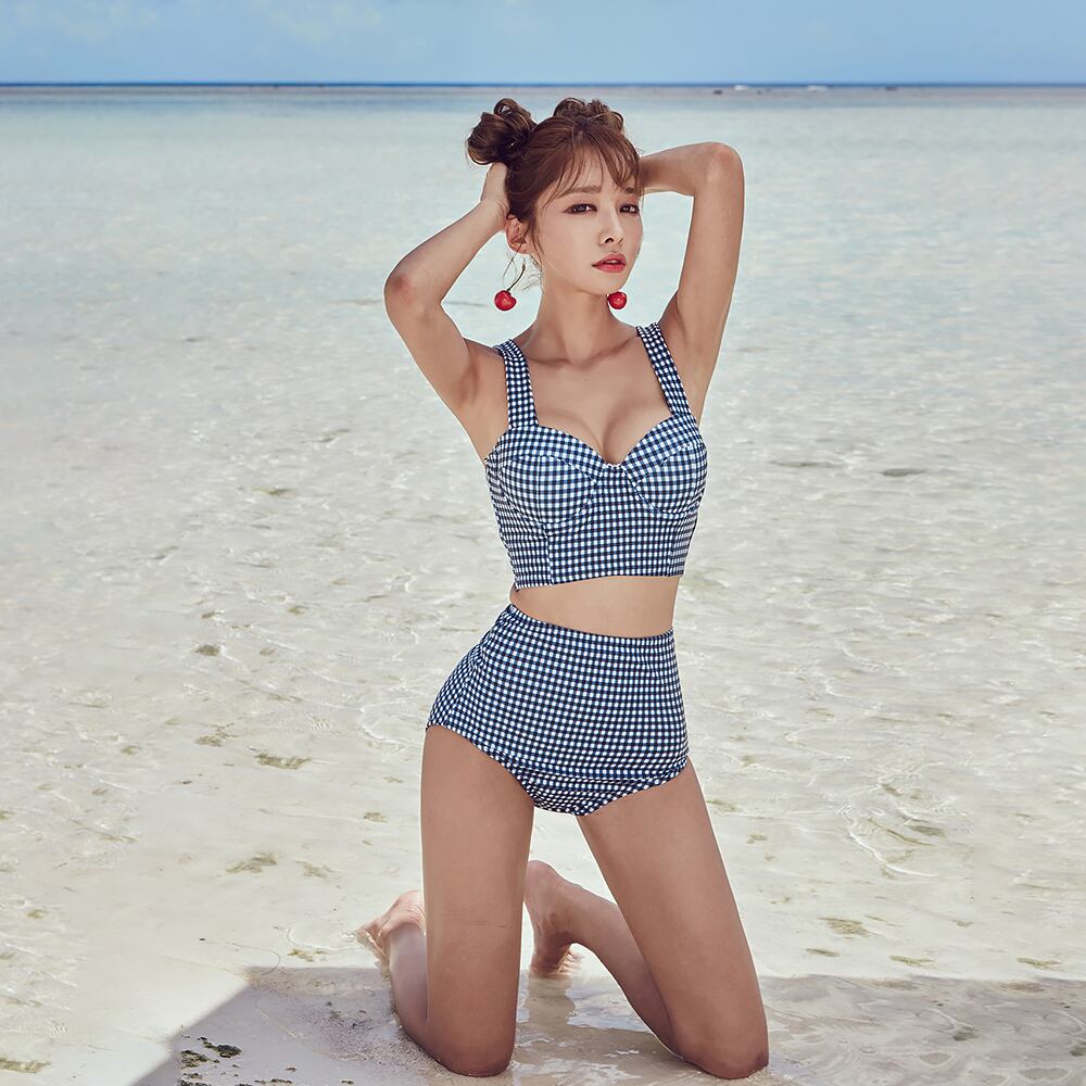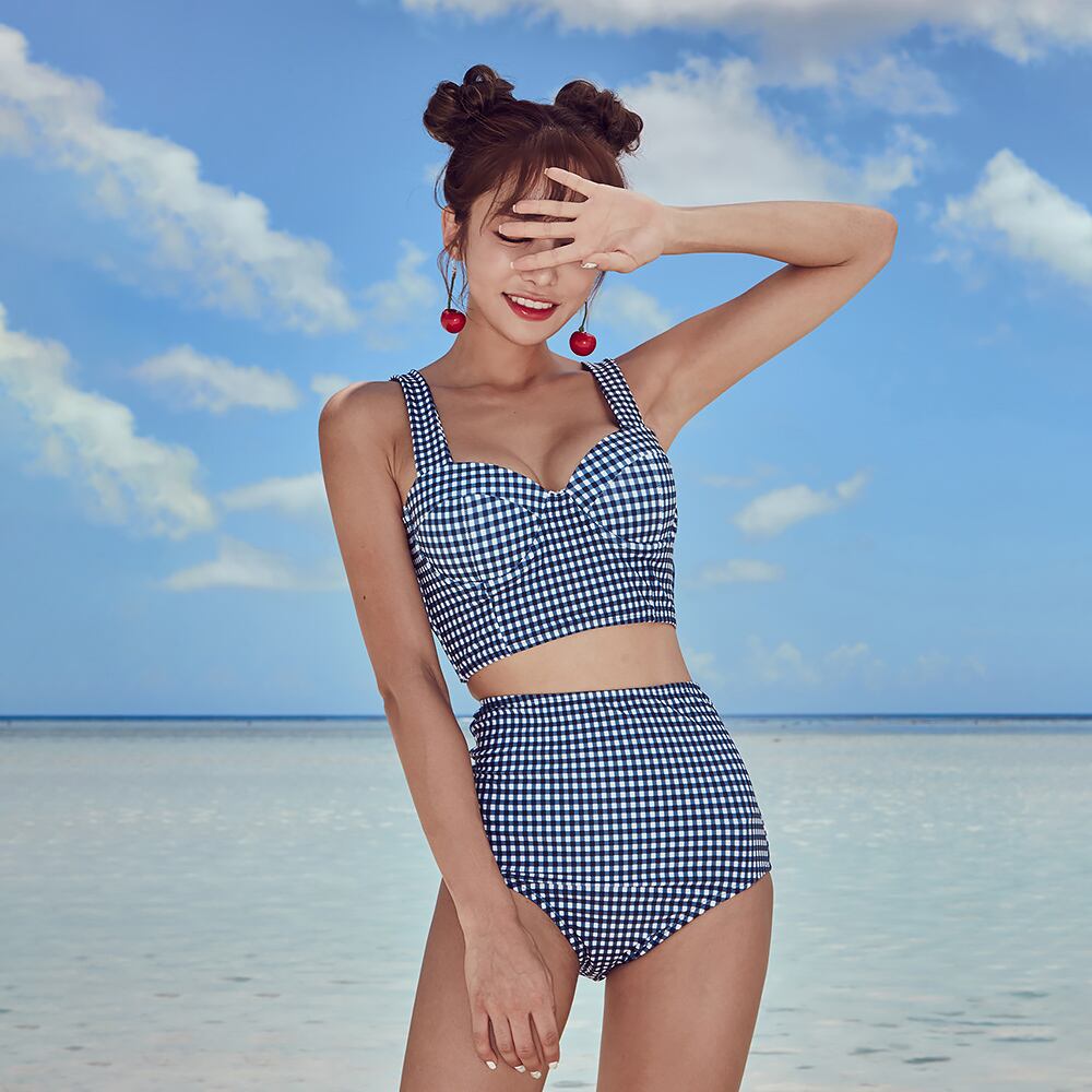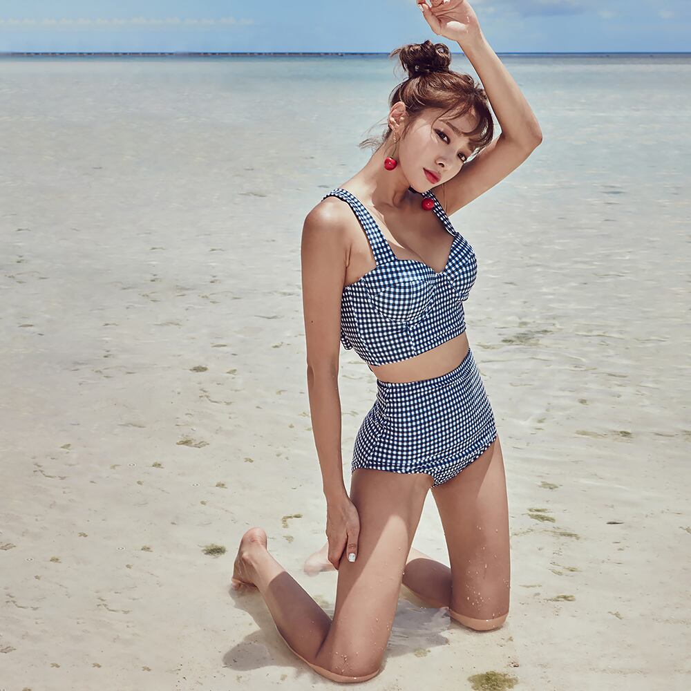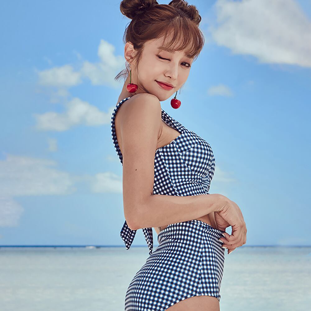 水着 青 ハイウエストビキニ ギンガムチェックバックリボンビキニ タンキニ チェック柄 上下セット ハイウエスト 格子柄 ギンガムチェック スイムウェア 胸パッドあり ワイヤーあり ビスチェ ブルー レトロ モダン フェミニン セクシー 大人 おしゃれ お洒落 女っぽ 個性的 レディース ホテル 温泉 海 ビーチ プール リゾート 旅行 着痩せ スタイルアップ 体型カバー 韓国 韓国系 オルチャン M L XL 韓国コーデ 韓国ファッション