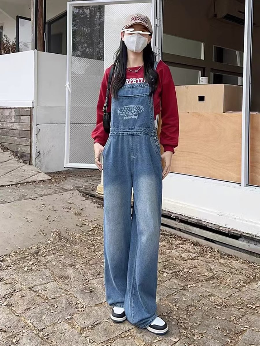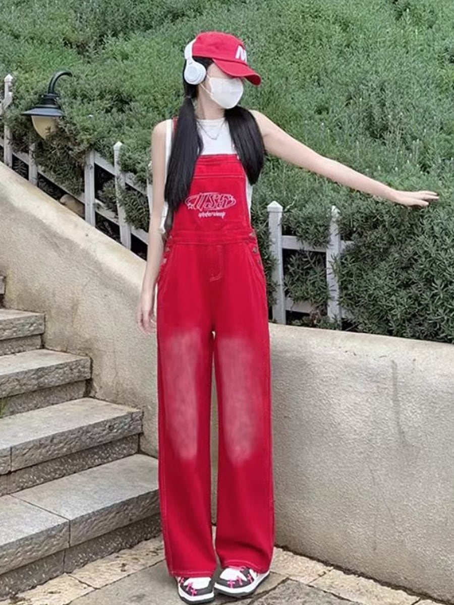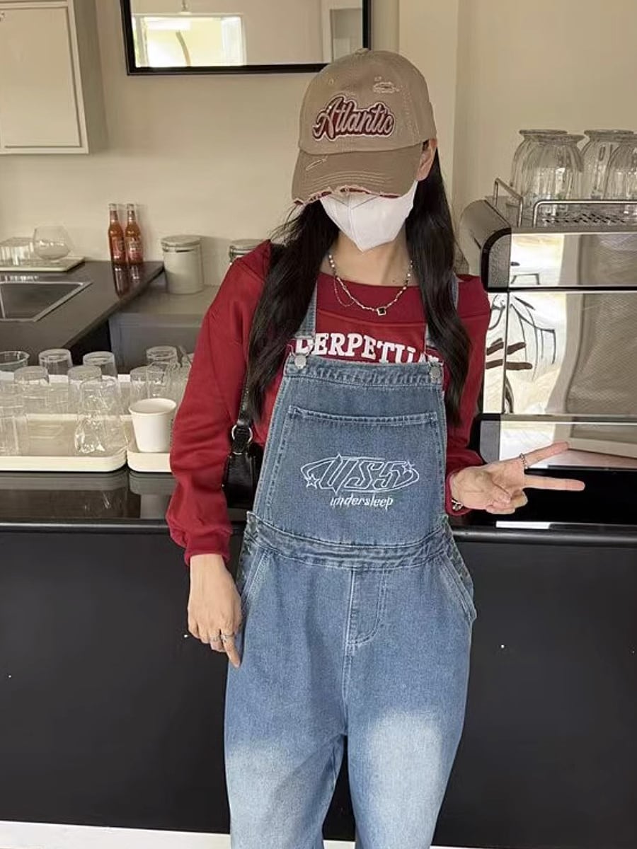 全3色 刺繍入りカラーデニムオーバーオール つなぎ デニム サロペットパンツ デニム つなぎ サロペット ジャンプスーツ オールインワン オーバーオール カバーオール コンビネゾン レトロ 刺繍 星 アメカジ 動きやすい 楽ちん お家コーデ リラックスタイム くつろぎタイム カジュアル かわいい 大人可愛い 可愛い かっこいい おしゃれ 韓国系 オルチャン 韓国コーデ 韓国ファッション カラーデニム レッド 赤 青 ブルー ピンク