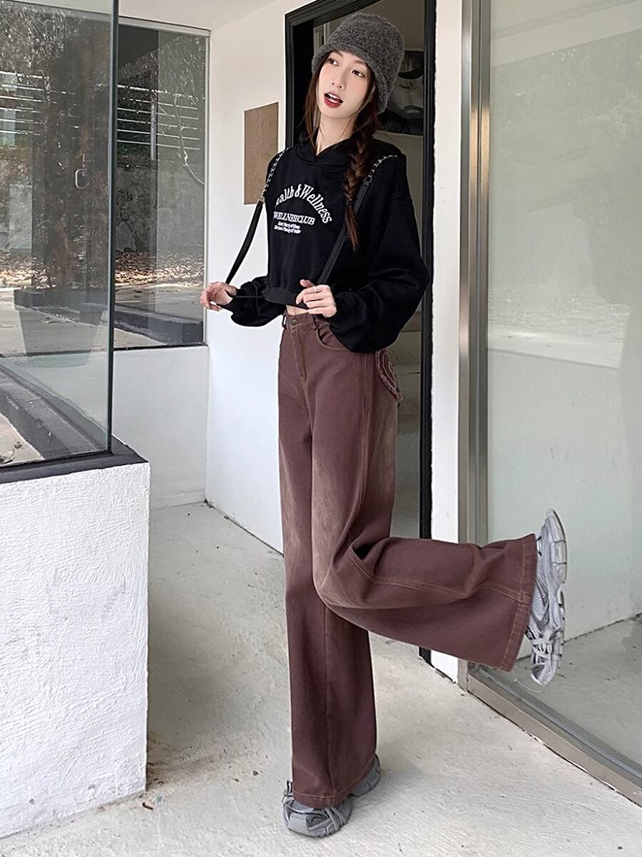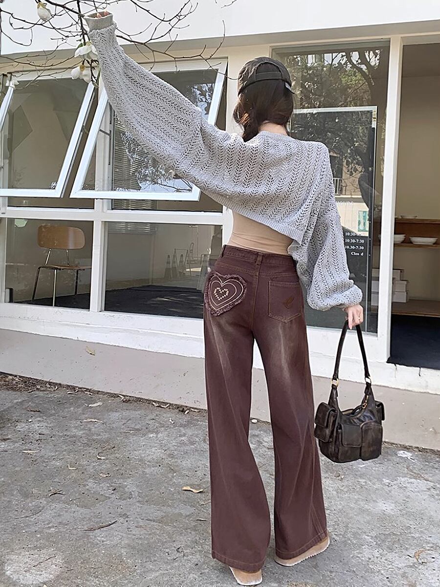 ハート刺繍デニム パンツ ハイウエスト ワイドルーズデニム ハート刺繍 ハート ワイドレッグ 体型カバー ストリート ヒップマーク かわいい 大人可愛い ジーパン カジュアル 大人 おしゃれ お洒落 かっこいい 大人可愛い 大人女子 こなれ感 ラフ ラブリー キュート ガーリー 個性的 レディース 学生 通学 デート お出かけ 公園デビュー 女子会 休日 リゾート 旅行 韓国コーデ 韓国ファッション 茶系 オールドブラウン レトロブラウン