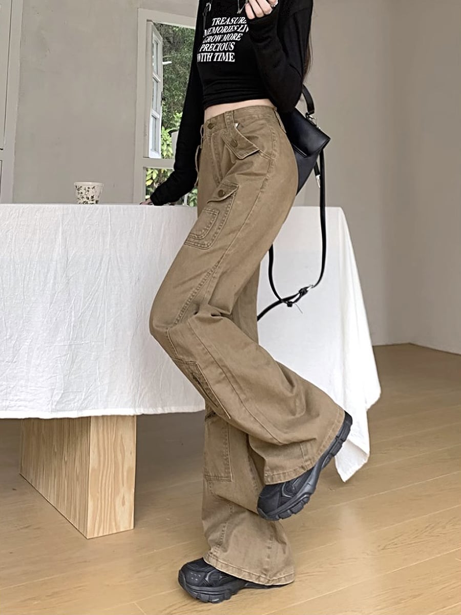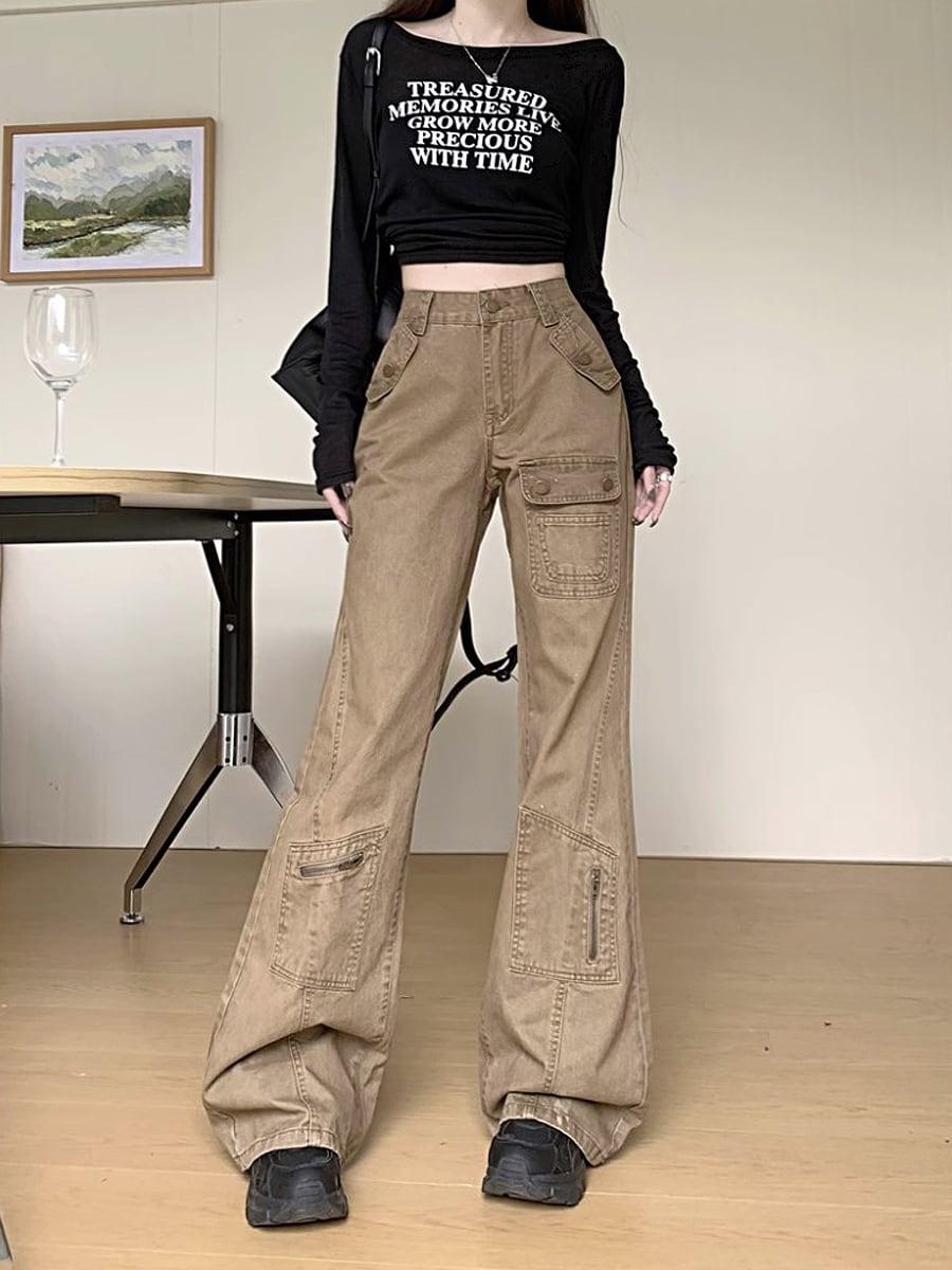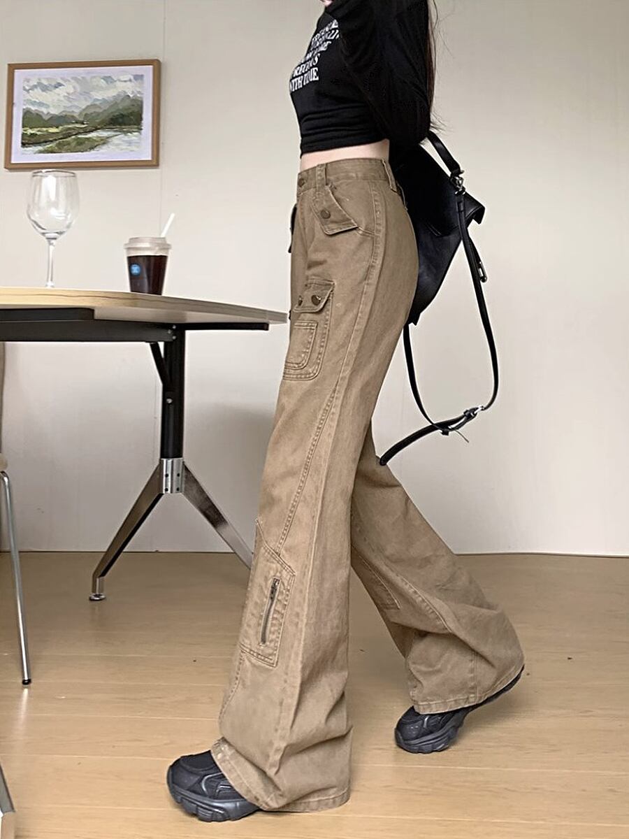 カーキカラーデニムロングパンツ ハイウエスト ワイド 春秋 ワイドレッグ フロアレングス ストリート フレア かわいい 大人可愛い カラージーパン カジュアル 大人 おしゃれ お洒落 かっこいい 大人可愛い 大人女子 こなれ感 ラフ ラブリー キュート ガーリー 個性的 レディース 学生 通学 デート お出かけ 公園デビュー 女子会 休日 リゾート 旅行 韓国コーデ 韓国ファッション