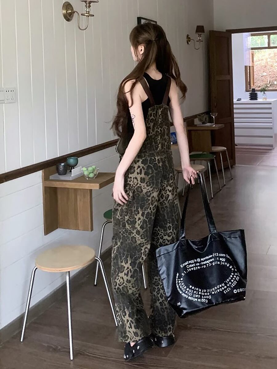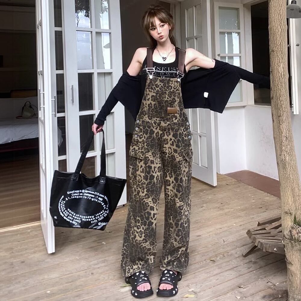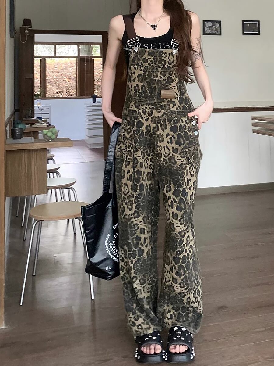 ヒョウ柄オーバーオール 豹柄 ヒョウ柄 ひょう柄 つなぎ デニム サロペットパンツ デニム つなぎ サロペット ジャンプスーツ オールインワン オーバーオール カバーオール コンビネゾン マニッシュ ボーイッシュ レトロ アメカジ 動きやすい 楽ちん お家コーデ リラックスタイム くつろぎタイム カジュアル かわいい 大人可愛い 可愛い かっこいい おしゃれ 韓国系 オルチャン 韓国コーデ 韓国ファッション カラーデニム