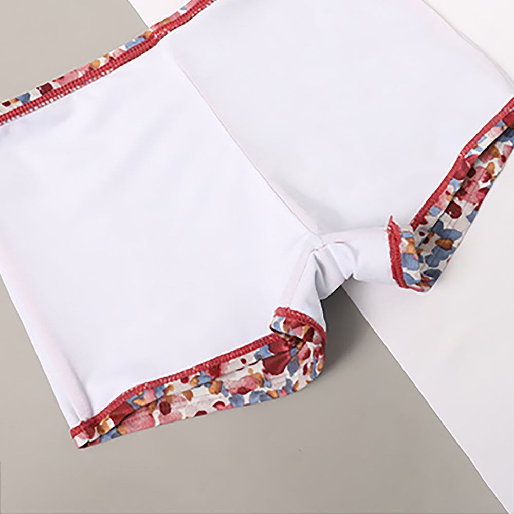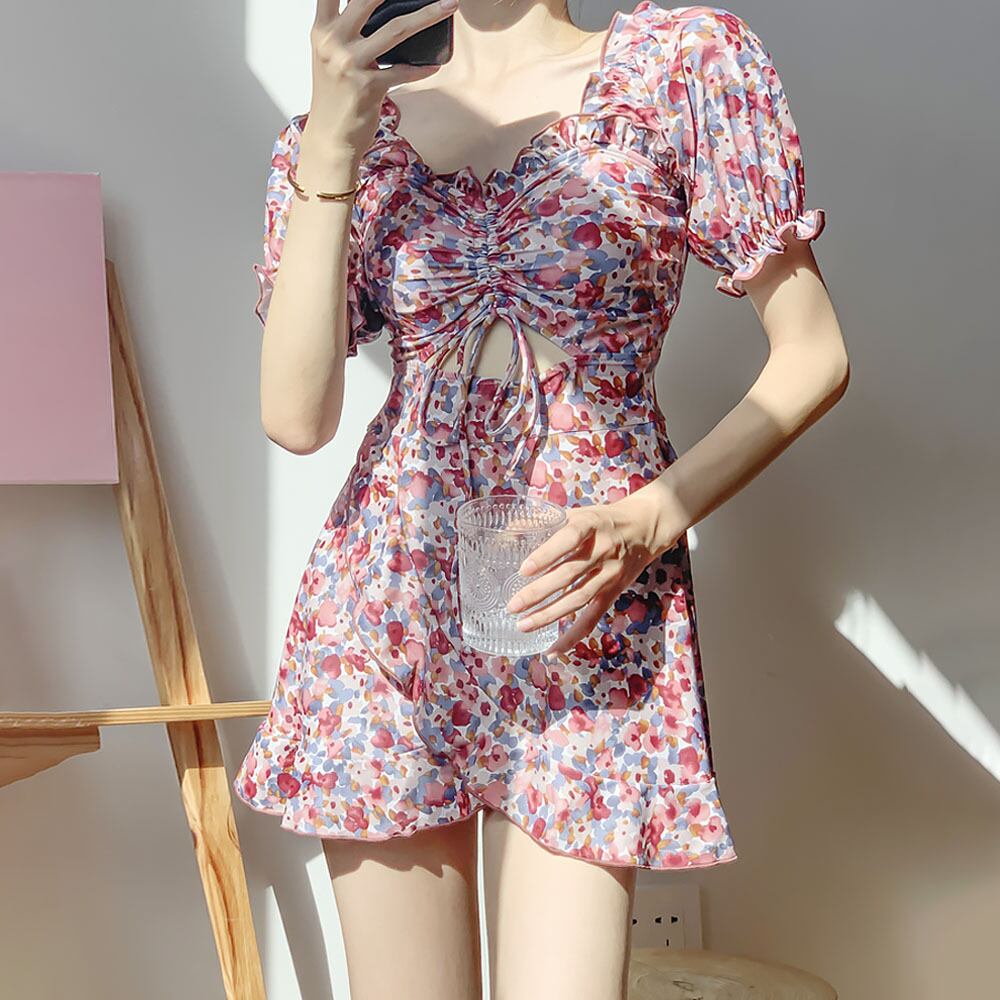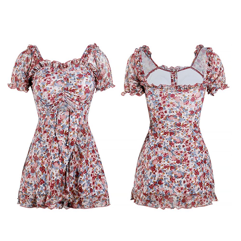 花柄がキュートなワンピース水着風でバストはシャーリングデザインです。