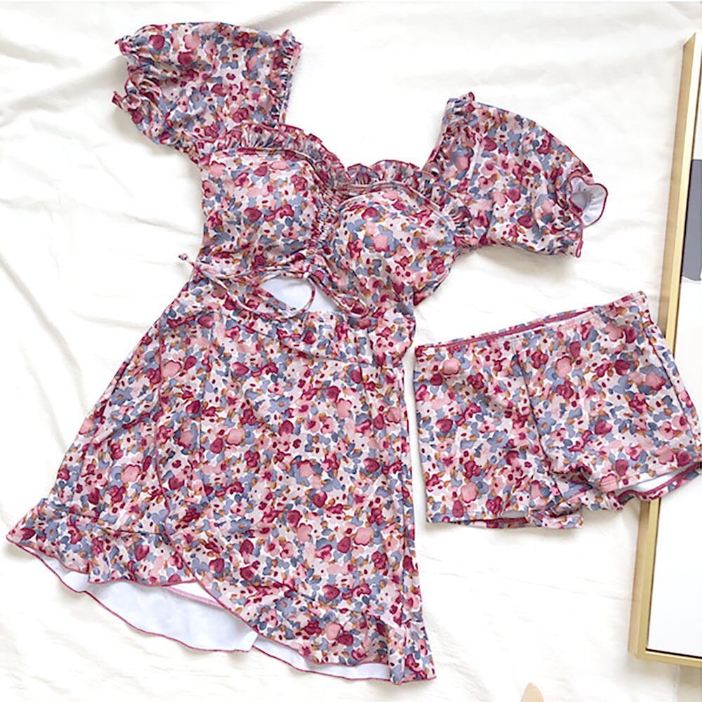 水着 小花柄セパレート水着 セパレート スカート 切り替えデザイン フリル シャーリング ギャザー ワンピース風 スイムウェア 胸ホールド パッド付き ワイヤーなし 露出控えめ 露出少なめ 上品 清楚 お嬢様風 フェミニン ラブリー キュート ガーリー シンプル カットアウト セクシー おしゃれ お洒落 レディース 可愛い キャミソール風 ホテル 温泉 海 ナイトプール リゾート 脚長効果 盛り 旅行 スタイルアップ 韓国 M L LL 3L 韓国コーデ 韓国ファッション ピンク
