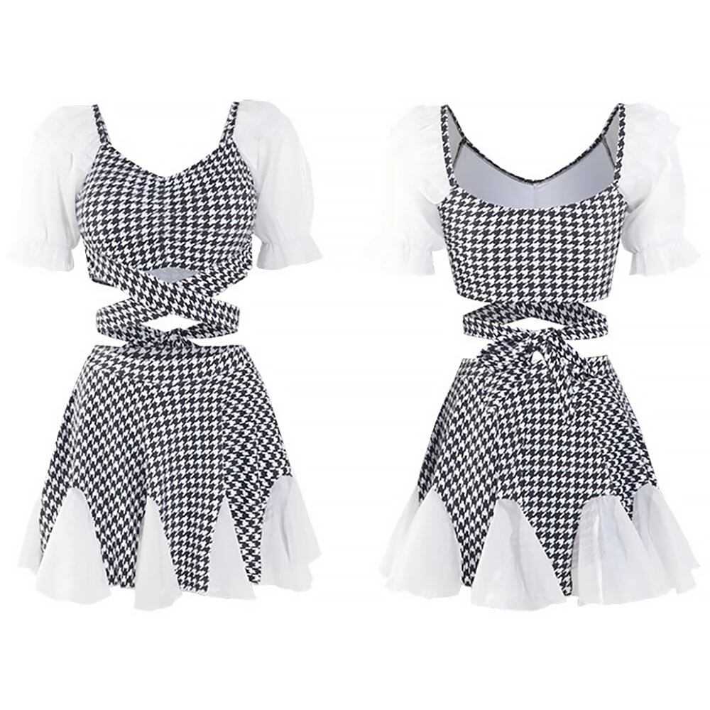 水着 ビキニ 千鳥格子セパレート水着 セパレート ツーピース スカート 袖あり 半袖 切り替えデザイン フリル シャーリング ギャザー ワンピース風 スイムウェア ハイウエスト 透け感 胸ホールド パッド付き ワイヤーなし 露出控えめ 露出少なめ 上品 清楚 お嬢様風 フェミニン ラブリー キュート ガーリー シンプル カットアウト セクシー おしゃれ お洒落 レディース 可愛い キャミソール風 ナイトプール リゾート スタイルアップ 韓国 S M L XL 韓国コーデ 韓国ファッション 白 黒