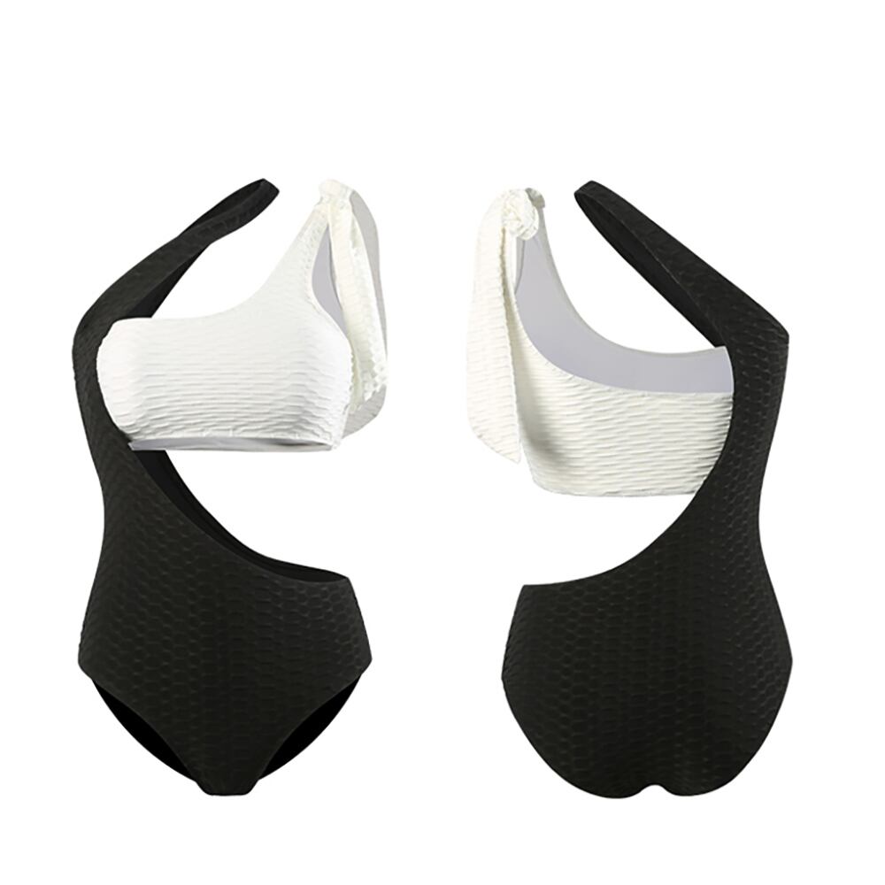 水着 バイカラーウエストカットワンピース モノキニ ワンピース クロス 肩リボン ウエストカットアウト パッド付き ワイヤーあり きれいめ 体系カバー かわいい 大人可愛い セクシー 大人 大人っぽい おしゃれ 主役級 存在感 個性的 モード系 モダン かっこいい レディース 海 ビーチ プール リゾート バカンス 美脚 脚長 スタイル 高見え 格上げ モテ M L LL 韓国コーデ 韓国ファッション 黒 白