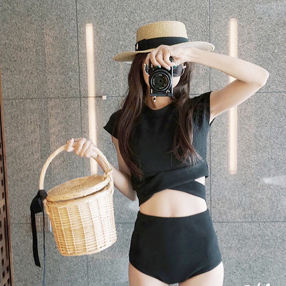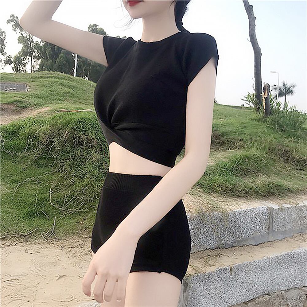 Tシャツのようなトップスのツーピース水着です。