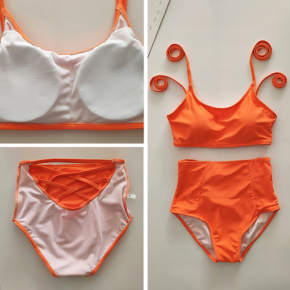 全3色 水着 ボトムカットアウトビキニ タンキニ カラービキニ かぎ編み ツーピース セパレート ビキニ 白 黒 オレンジ ハイウエスト パッド付き ワイヤーなし バックコンシャス バックシャン スタイリッシュ ガーリー キュート かわいい おしゃれ モード系 モダン ラブリー レディース 海 ビーチ プール リゾート バカンス 美脚 脚長 スタイル 高見え 格上げ モテ 韓国コーデ 韓国ファッション