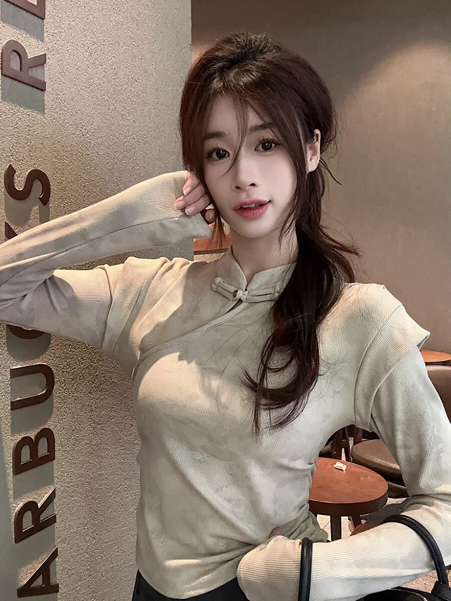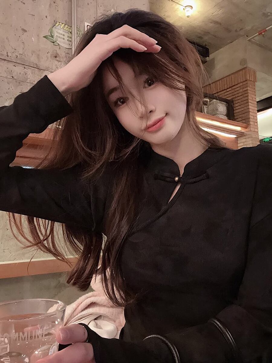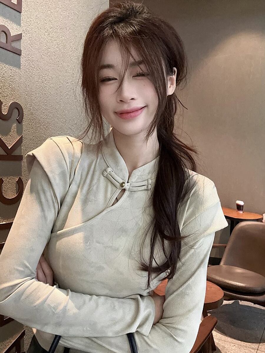 パンコウ(チャイナボタン)と胸元がチラ見えするデザインがポイントです。