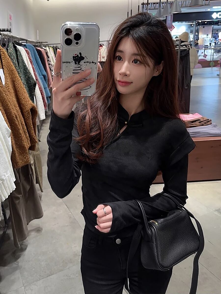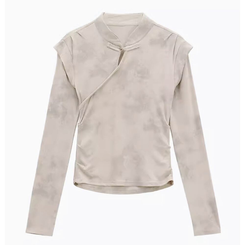 全2色 チャイナカラー長袖Tシャツ プルオーバー Tシャツ チャイナボタン パンコウ 長袖 肩タック 生成り アプリコット オフホワイト アイボリー 中国服 チャイナ服 大人可愛い おしゃれ 大人女子 ラブリー キュート ガーリー 透け感 主役級 存在感 花柄 春 夏 秋 レディース ママ 学生 OL デート 女子会 通勤 通学 休日 イベント リゾート 旅行 ホテル コーデ モテ インスタ映え 韓国コーデ 黒 ブラック | 栄屋美原堂