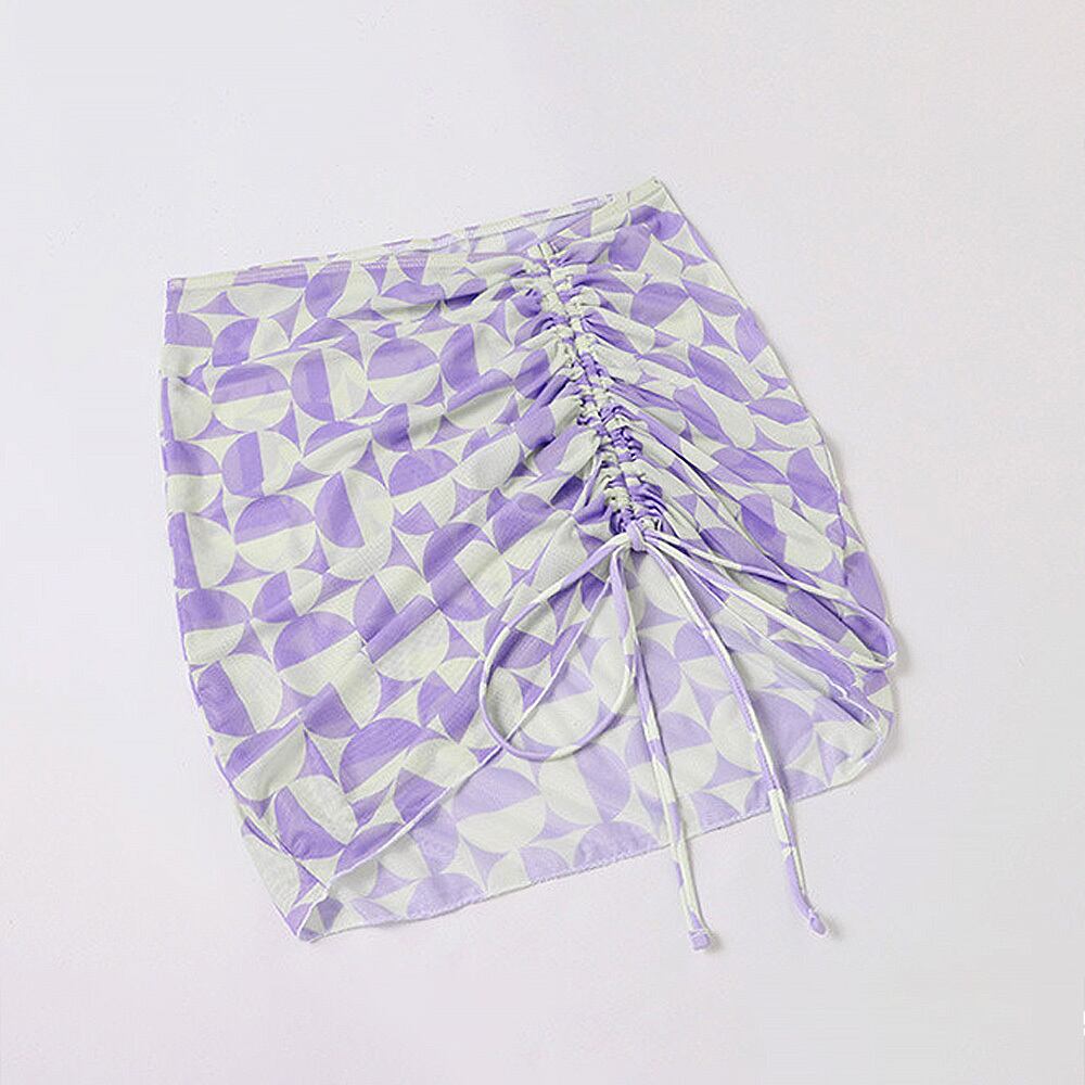 3点セット 水着 ライトパープルホルターネックビキニ上下+ドロストスカート サロン スカート 幾何学模様 ドロスト ビキニ ホルターネック 紐ビキニ ブラジリアンビキニ ベーシック シンプル スイムウェア パッド付き パッド ワイヤーなし 美脚 レトロ モダン フェミニン セクシー 大人 お嬢様 おしゃれ お洒落 女っぽ 個性的 レディース ホテル 温泉 海 ビーチ プール リゾート スタイルアップ 韓国 S M L XL 韓国コーデ 韓国ファッション 紫 薄紫