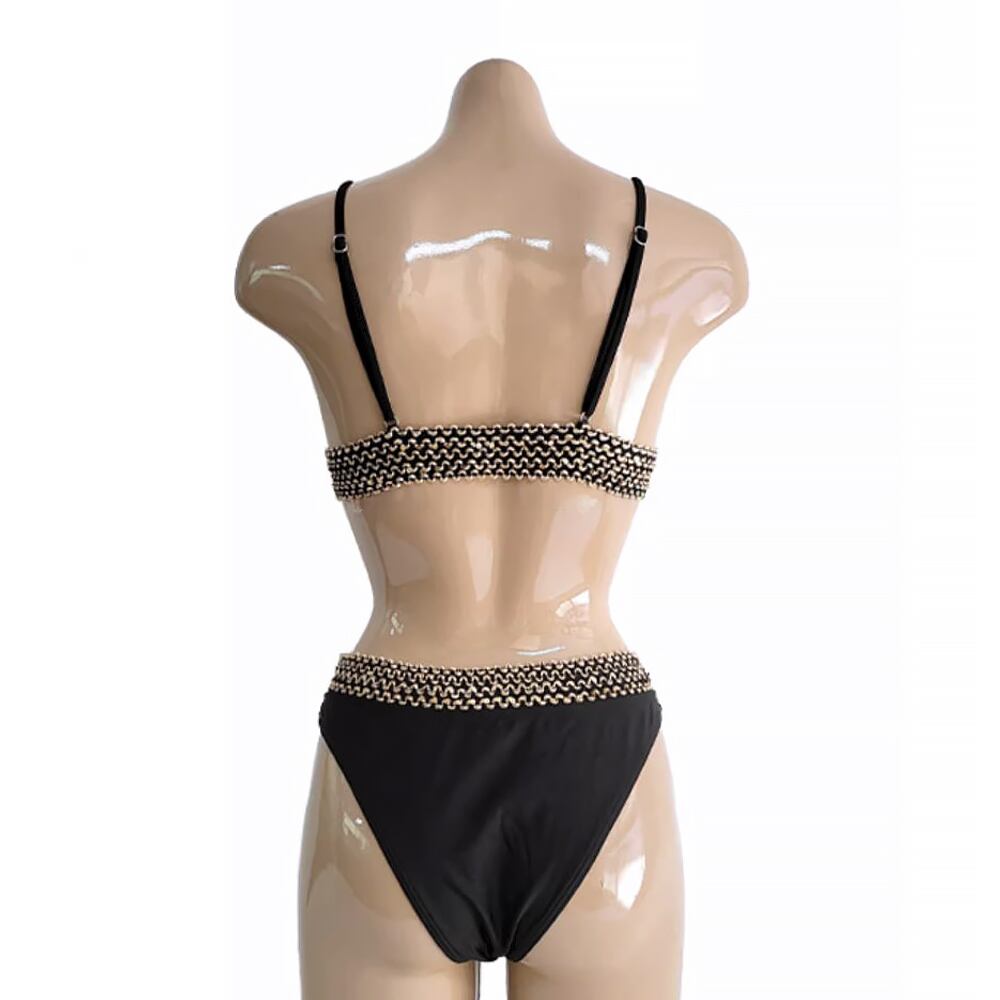 トップルのアンダー部分とアンダーの上部分にキラキラ感のある素材をつかった存在感とゴージャス感のあるビキニです。