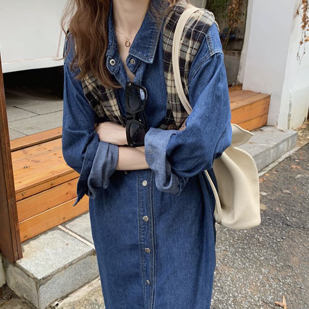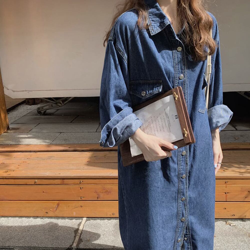 デニムロングシャツワンピース シャツワンピース デニムシャツ ロング シャツワンピ 重ね着 袖あり 長袖 襟付き 前開き かわいい 大人可愛い きれいめ シンプル カジュアル 大人 おしゃれ ベーシック こなれ感 ラフ キュート ルーズ クール 主役級 存在感 無地 春 秋 10代 20代 30代 レディース 学生 通学 旅行 着回し 普段使い 重ね着 韓国 オルチャン ファッション コーデ スタイル 韓国コーデ 韓国ファッション 青