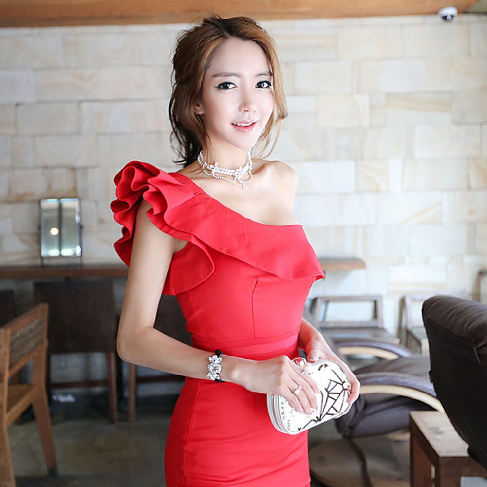 全2色 ワンショルダーフリルパーティドレス ワンピース パーティードレス ワンショル 膝丈 セミタイト フェミニン エレガント セクシードレス ボディコン ショート ショート丈 ビッグフリル ワンショルダー 襟なし スレンダー タイト スリム 切り替えデザイン 胸元 谷間 谷間魅せ きれいめ 上品 おしゃれ 大人可愛い セクシー きれいめ ホテルディナー 同窓会 観劇 お呼ばれ モダン ゴージャス 華やか 韓国コーデ 韓国ファッション 赤 黒