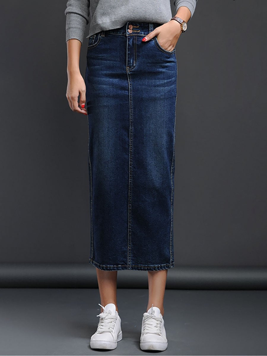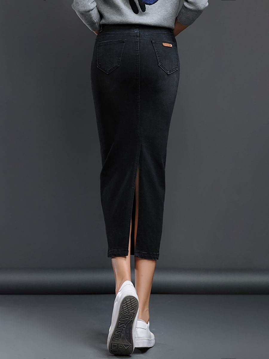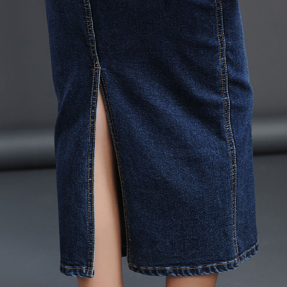全2色 ロングタイトデニムスカート タイトスカート デニムスカート ミモレ ロング スリム タイト 細身 切り替えデザイン スリット バックスリット ファスナー ポケット 前開き デニム ブルーデニム カラーデニム ブラックデニム シンプル ベーシック かわいい 大人可愛い きれいめ おしゃれ かっこいい レトロ 大人女子 こなれ感 個性的 モード系 エレガント モダン 主役級 存在感 抜け感 無地 オールシーズン レディース 休日 着回し 普段使い韓国コーデ 韓国ファッション 黒
