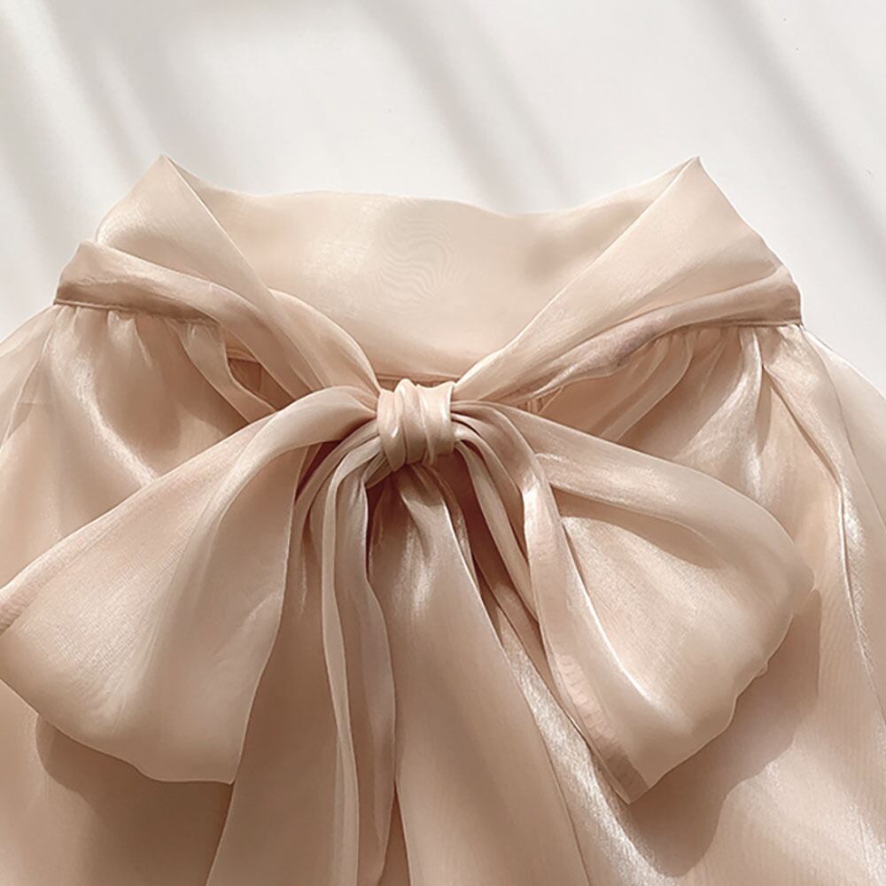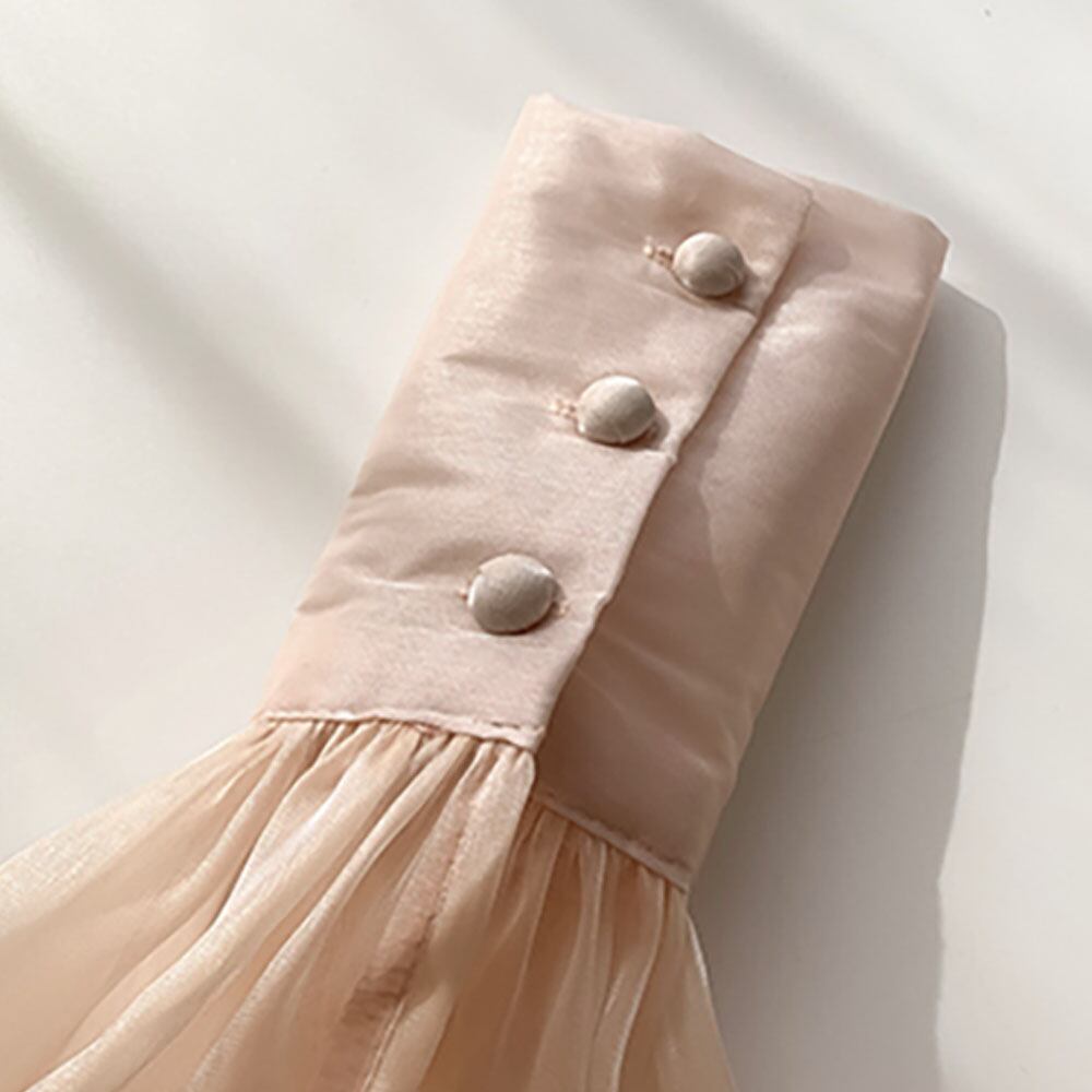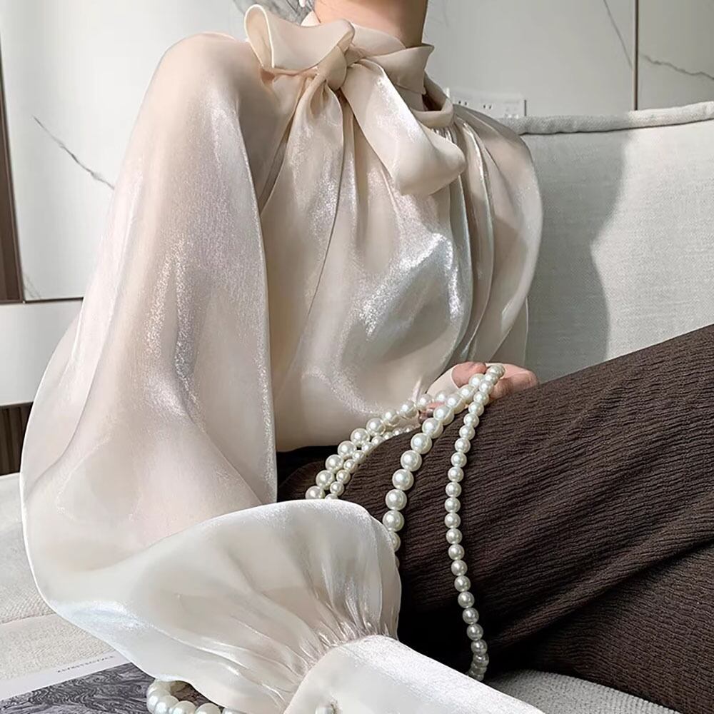 ボウタイジョーゼットブラウス シャツブラウス シフォン デシン 長袖 ボリューム袖 パフスリーブ フレアスリーブ ホルンスリーブ ドロップショルダー 萌袖 襟付き フレア ワイド 切り替えデザイン リボン ふわふわ とろみ 透け感 薄手 かわいい 大人可愛い きれいめ 上品 おしゃれ お洒落 かっこいい レトロ 大人女子 こなれ感 ラブリー キュート ガーリー 個性的 モード系 エレガント モダン 主役級 存在感 抜け感 無地 韓国コーデ 韓国ファッション 薄いベージュ