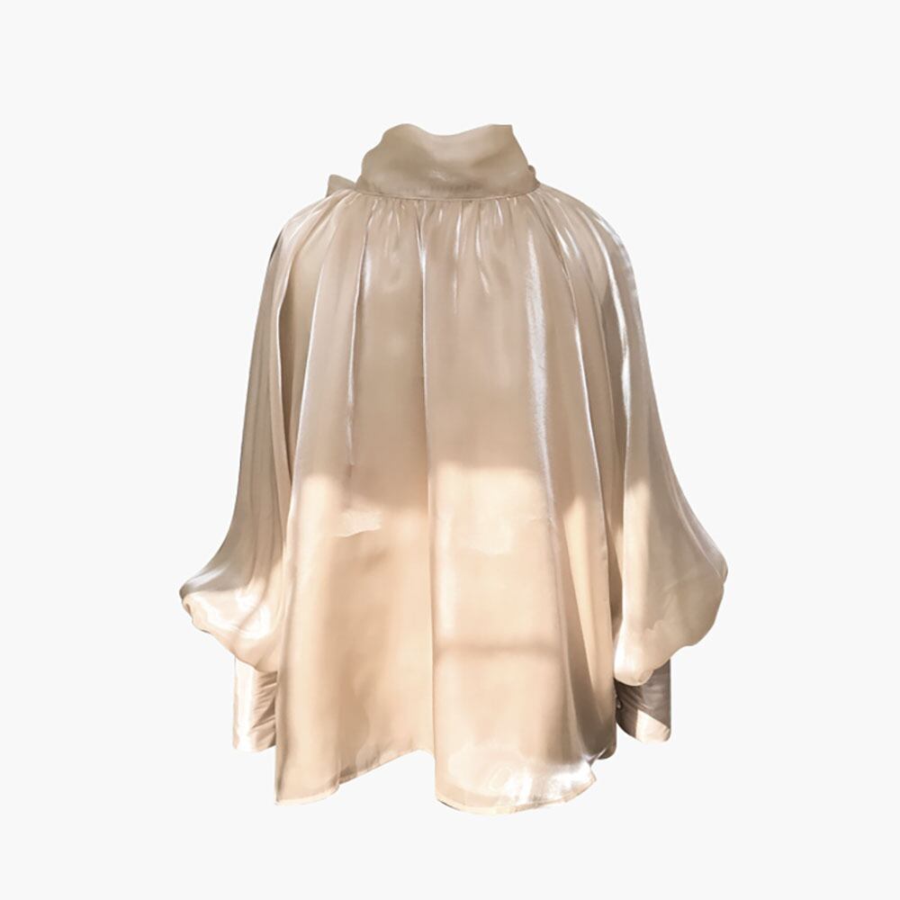 オーガンジーの様な素材で光沢感のあるブラウスです。