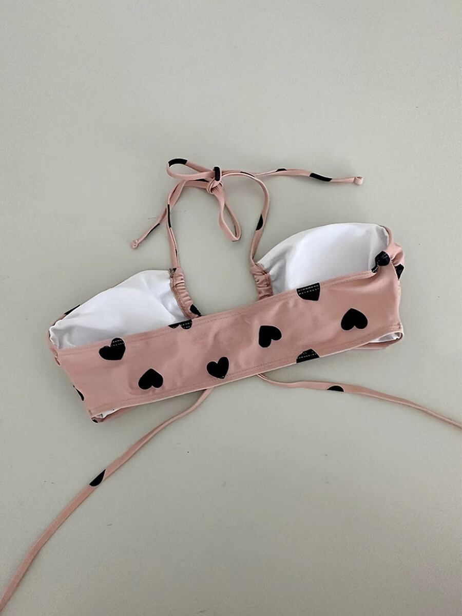 水着 3点セット ハートプリン色クロスホルターネックビキニ上下+パレオ ビキニ上下 ダブルクロスホルター セパレート クロスアンドクロス 前交差リボン ハート模様 リボン セクシー 背中しっかりホールド スイムウェア パッド付き ワイヤーなし フェミニン おしゃれ お洒落 レディース 女性用 ホテル 温泉 海 ナイトプール リゾート 旅行 スタイルアップ 韓国 韓国コーデ 韓国ファッション ピンク くすみピンク