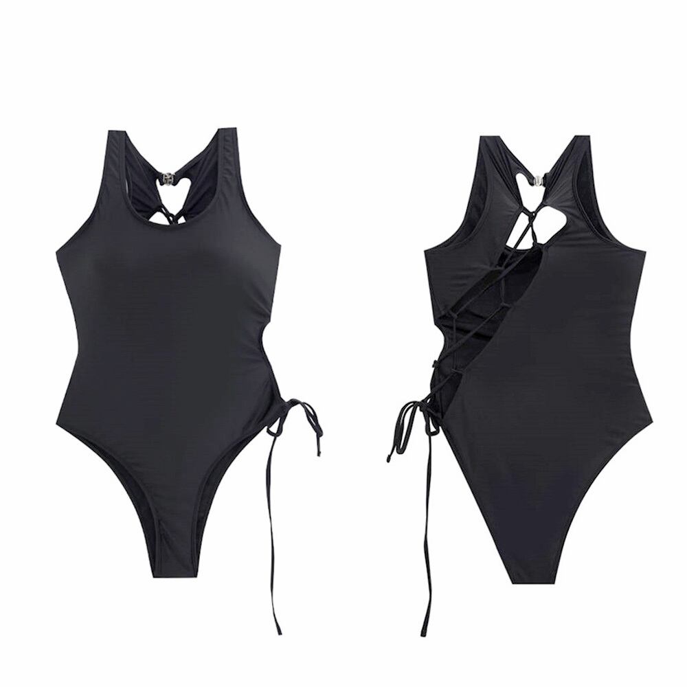 水着 セクシーバックカットアウトワンピース ワンピース水着 レースアップ 黒 ブラック モノキニ 胸パッドあり アンシンメトリー 黒 スイムウェア ワンピース バックカットアウト バックレースアップ ワイヤーなし 編み上げ かわいい セクシー シンプル 大人 おしゃれ お洒落 女っぽ 個性的 レディース ホテル 温泉 海 ビーチ プール リゾート 旅行 着痩せ スタイルアップ 美スタイル 韓国 韓国系 オルチャン M L XL 韓国コーデ 韓国ファッション 韓国コーデ 韓国ファッション