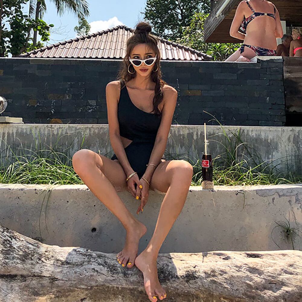 水着 ブラックワンショルダーカットアウトワンピース ワンピース モノキニ アシンメトリー ウエストカットアウト ワンショル ワンショルダー ウエスト強調 ウエスト細見せ 胸パッド付き ワイヤーなし かわいい 大人可愛い きれいめ セクシー 大人 大人っぽい おしゃれ ラブリー キュート ガーリー 個性的 スタイリッシュ かっこいい 無地 10代 20代 30代 夏 海 ビーチ プール リゾート 旅行 体系カバー 美脚 脚長 着痩せ スタイルアップ 黒 韓国コーデ 韓国ファッショ