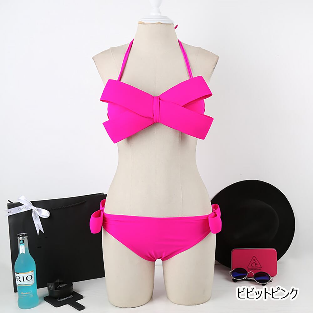 全8色 水着 リボンビキニ シンプル スポーティ ビキニ リボン スイムウェア セクシービキニ セパレート パッド付き ワイヤーあり 体系カバー 胸元 谷間 谷間魅せ かわいい 大人可愛い キュート セクシー sexy カジュアル 大人 大人っぽい おしゃれ 主役級 存在感 個性的 クール モード系 モダン かっこいい レディース 女性用 夏 海 ビーチ プール リゾート 旅行 美脚 脚長 スタイル 高見え 格上げ モテ 韓国コーデ 韓国ファッション 黒 白 水色 黄色